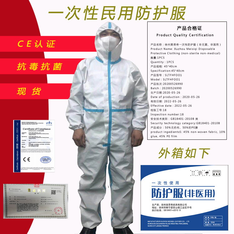 Spot SF Non-Woven Fabric Isolation Suit Disposable Protective Clothing Disposable Protective Coveralls Coated Coverall Hooded Pp + PE Protective Clothing
