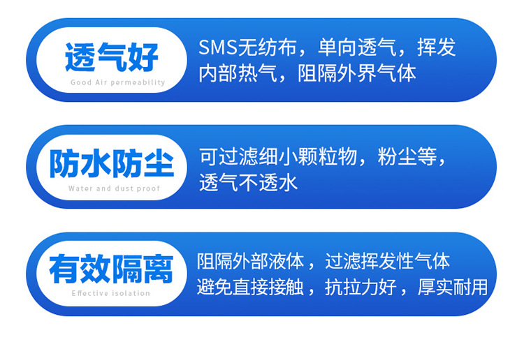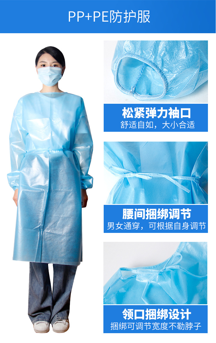 1. Thickened PP non-woven cloth +PE film 45g Length 119- chest 139- sleeve length 52
