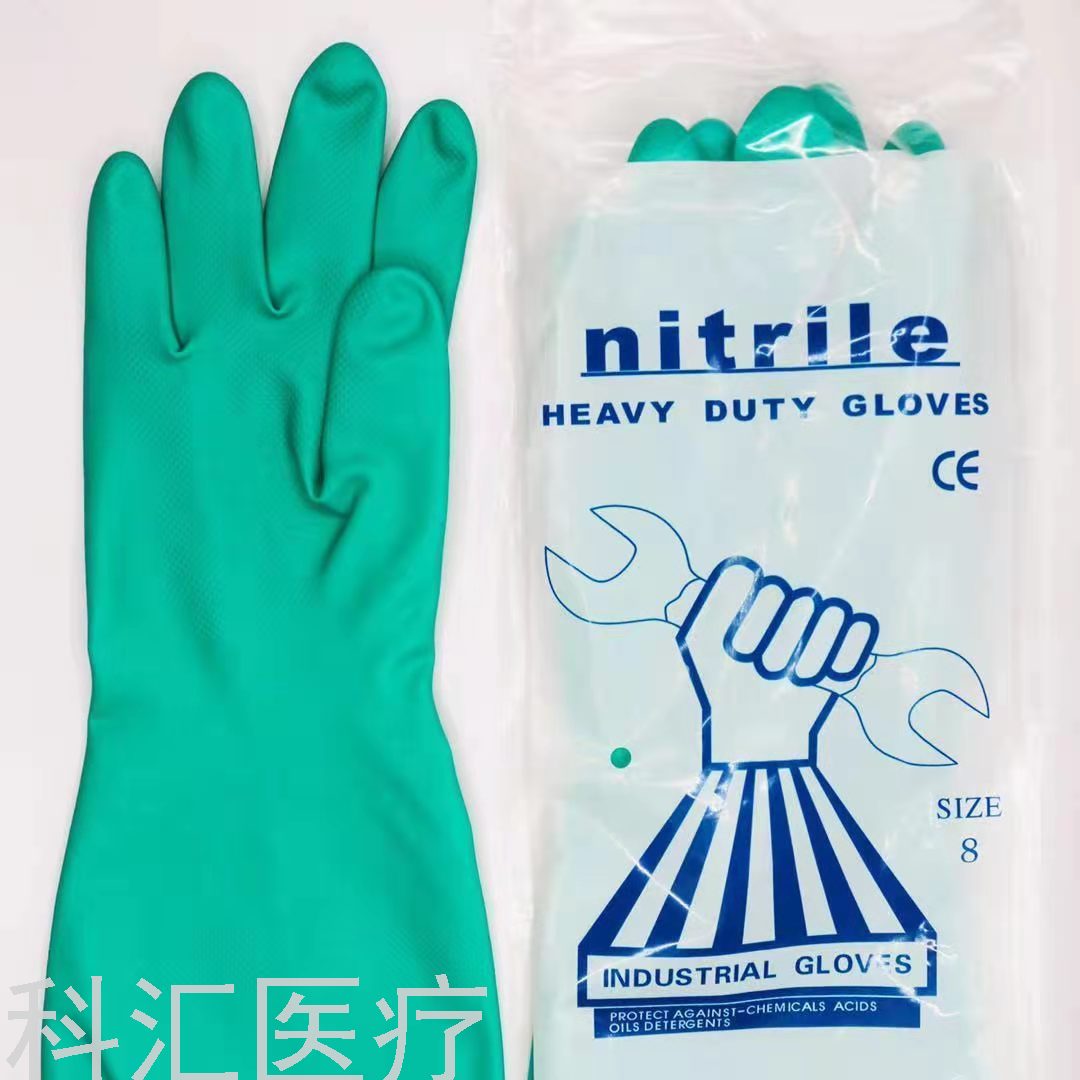 Green Nitrile Gloves Acid and Alkali Resistant Anti-Chemical Rubber Wear-Resistant Printing Oil-Proof