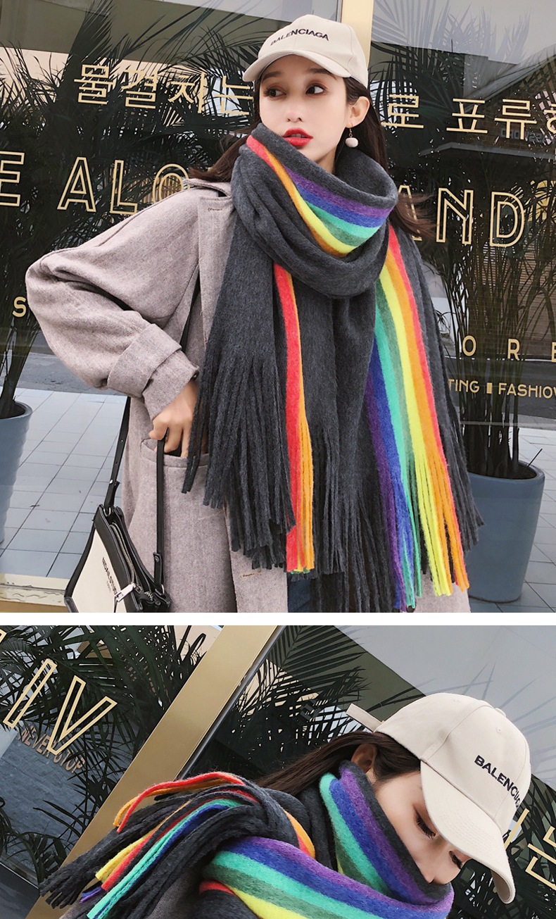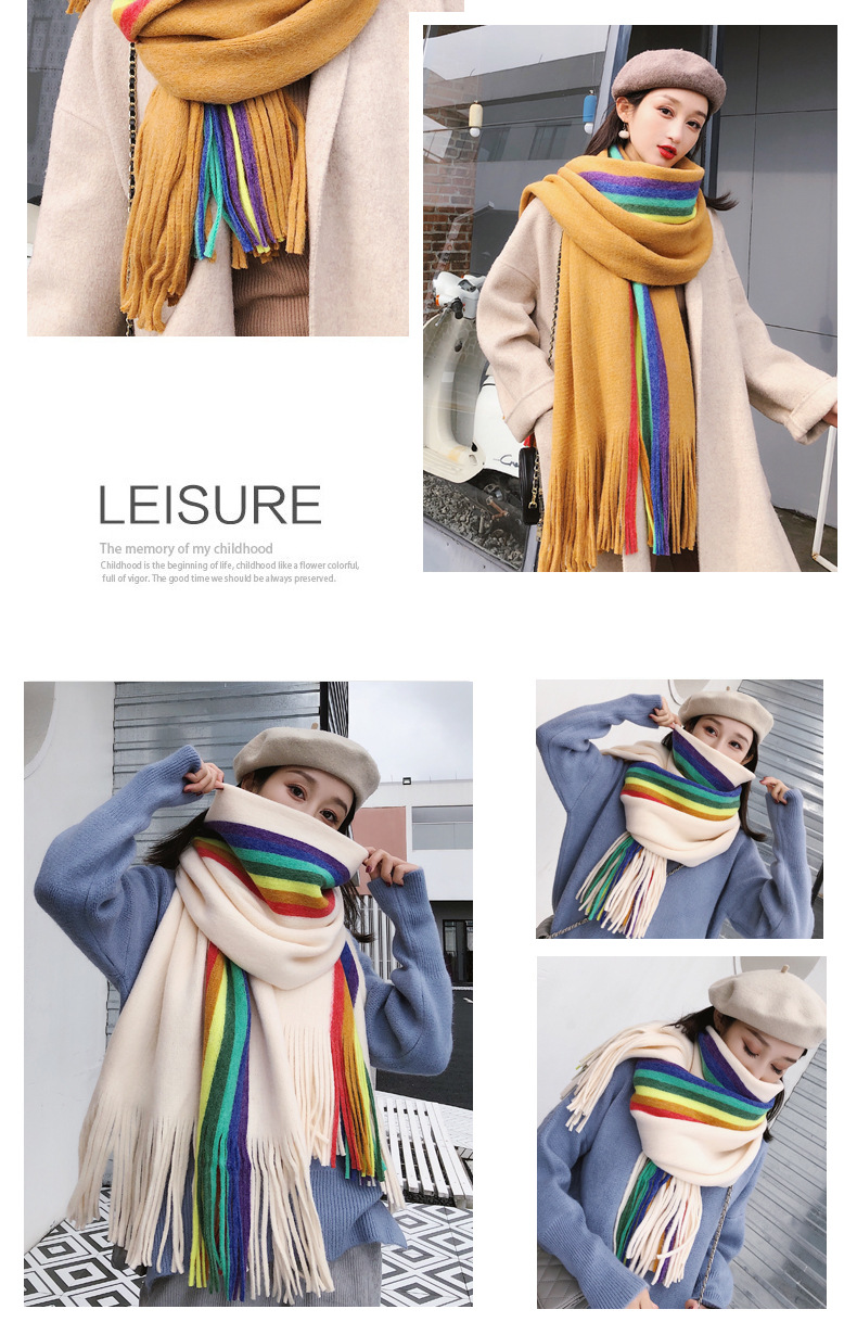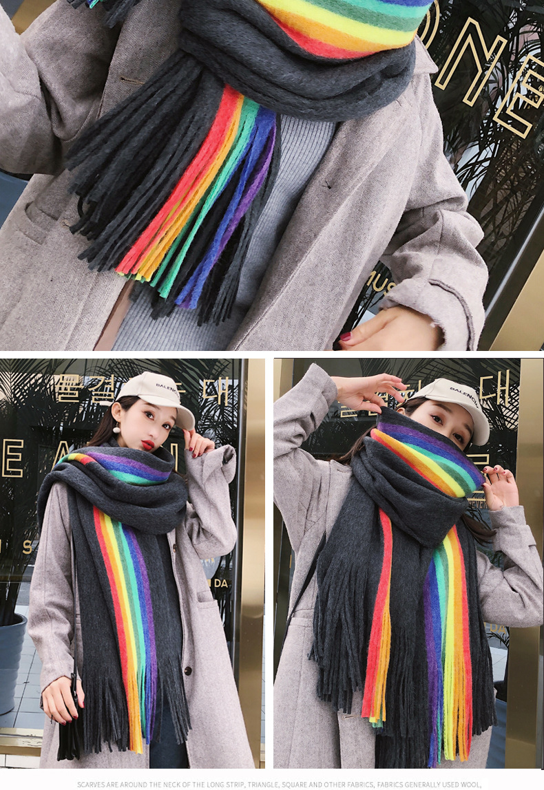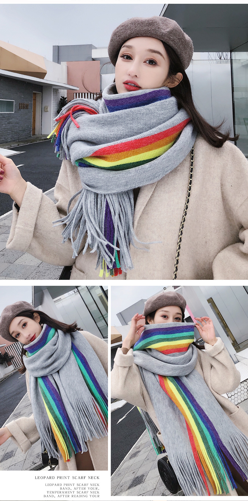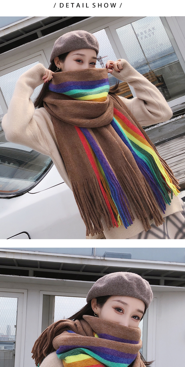 New Knitted Wool Scarf for Women Long Wild Thickened Keeping Warm Dual-Purpose Talma Fashionable Scarf Knitting Scarf