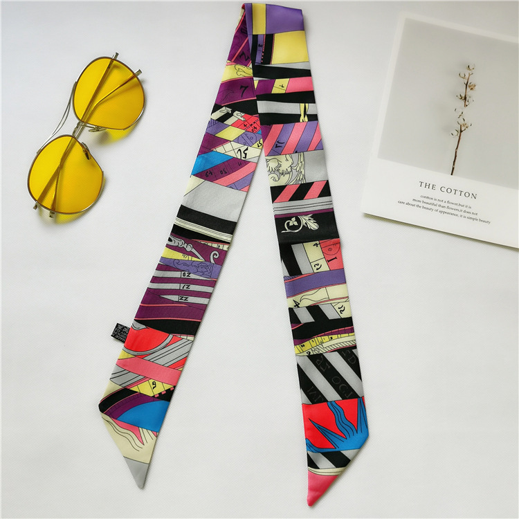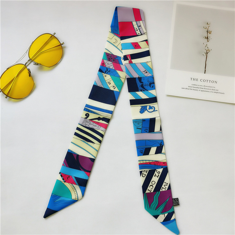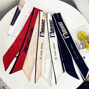Spring and Summer Imitated Silk Scarves Women's New Color Matching Letters Printing Professional Small Scarf Arm Bag Ribbon Wholesale