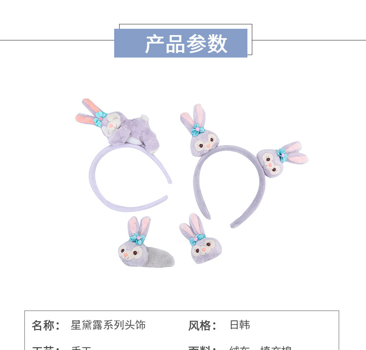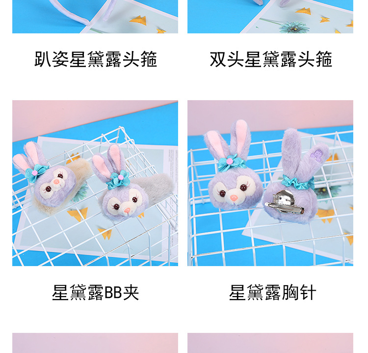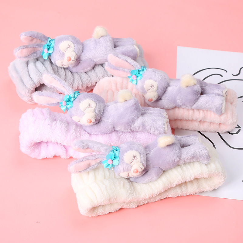 Cute Cartoon StellaLou Doll Head Rope Hair Elastic Hairpin Headband Plush Rabbit Ears Washing Face Hair Band