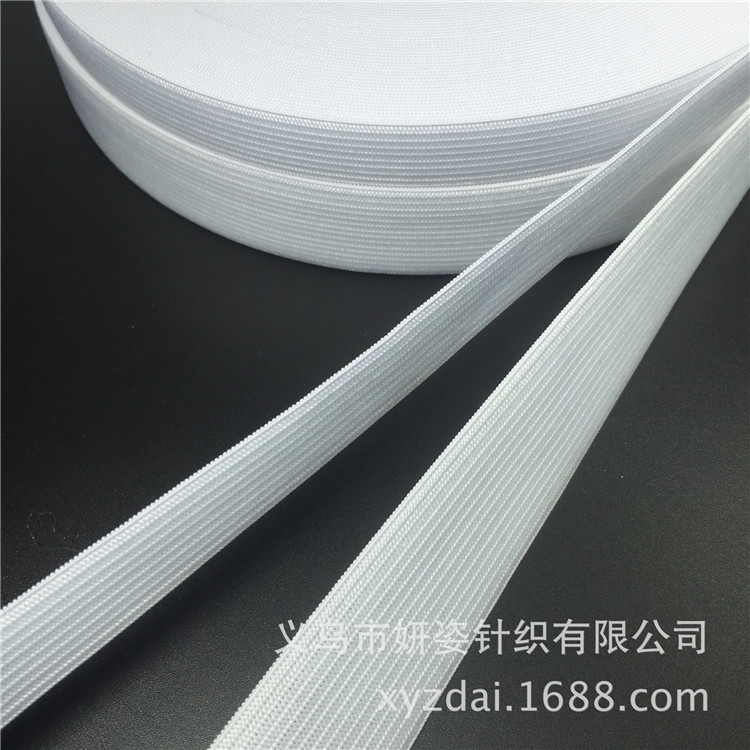usage: The fabric can be made of plain weave, heavy flat, twill, double layer, double warp and jacquard. Machine woven elastic band the texture is tight and the variety is diverse. It is widely used in clothing cuffs, Hem, bra, Garter, waist of trousers, waist girdling, shoe opening, sports protection and medical stretching, handicrafts, office stationery, industrial supplies, household goods and other products!