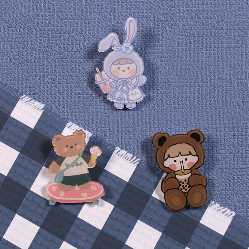 Cartoon Brooch Internet Celebrity Bear Badge Cute Clothes Acrylic Bag Fixing Buckle Pin Accessories Customized Brooch