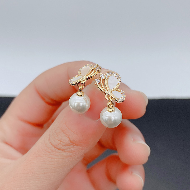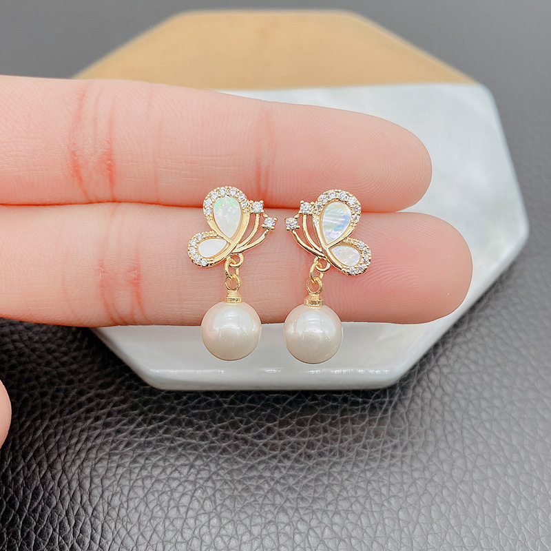 Korean Shell Pearl Butterfly Earrings Elegant Fairy Earrings 925 Silver Stud Earrings Fashion New Ear Studs