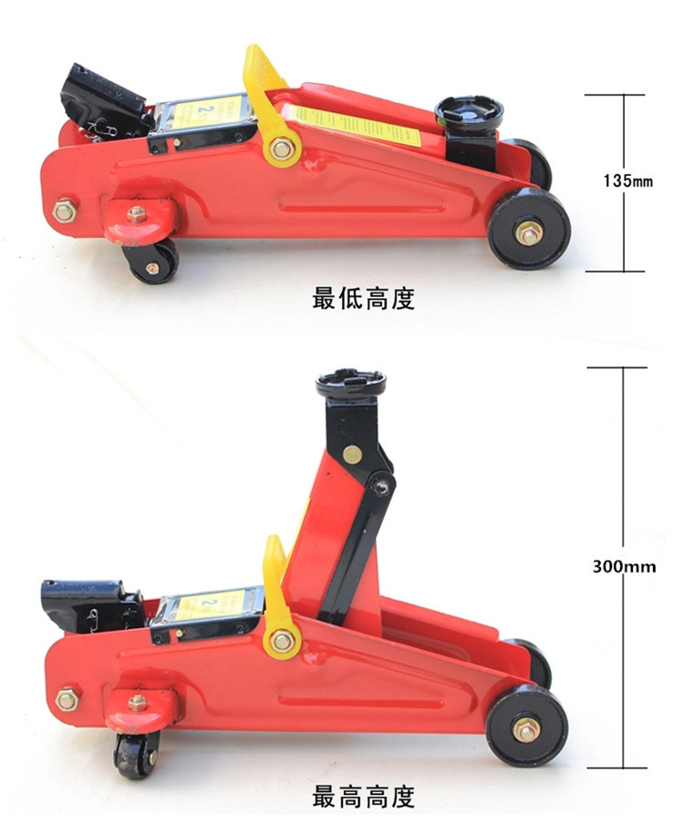 When using no.2, make sure to park the car on the ground and tighten the handbrake or foot brake. Otherwise, one of the car wheels will be on top, and the other three wheels may move, which may lead to danger. So when using a jack, make sure you park on the ground and tighten the hand or foot brakes. Note: after hoisting the vehicle with a jack, the jack bracket must be used to support the entire vehicle. The jack is only used to lift the body. Sometimes the jack will relieve pressure, which cannot guarantee your safety.Maintenance of hydraulic horizontal jack: hydraulic jack, also known as \"hydraulic jack\" is oil for the medium, so first of all the oil and the maintenance of the machine to avoid blockage or oil leakage, affecting the use effect. New or old hydraulic horizontal jack, because oil cylinder memory has much air, when starting to use, piston rod may appear the tiny jump phenomenon, may be empty reciprocating movement of hydraulic jack 2-3 times, in order to exclude the air in the cylinder.