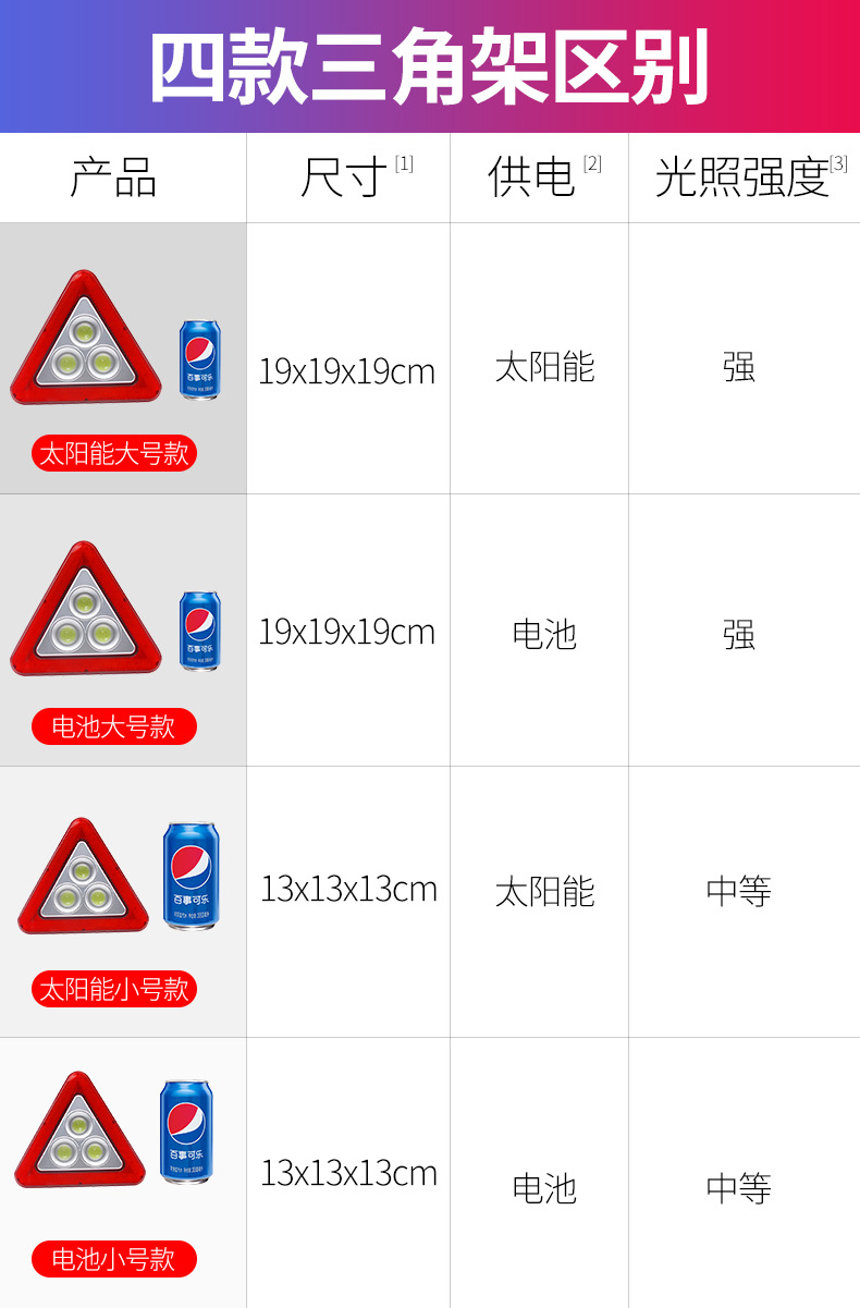 HS-8017 large LED triangle warning light (solar) 60pcs/ctn limit ¥59