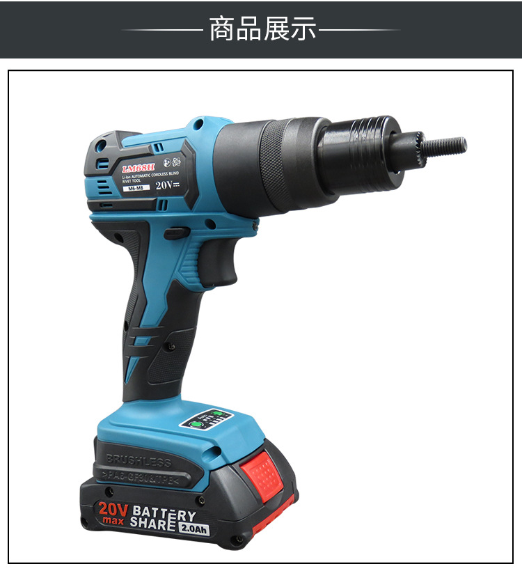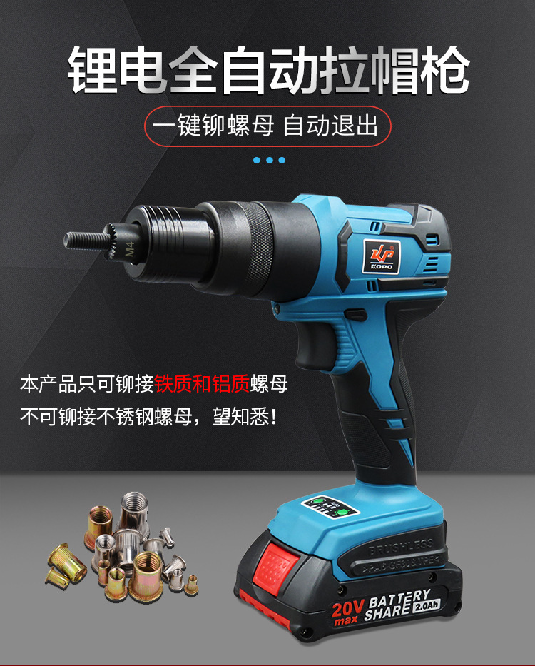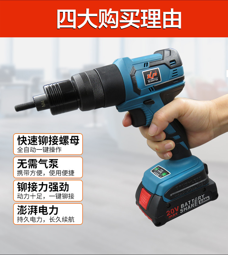 Gobo Rechargeable Automatic Rivet Nut Gun Electric Puller Gun M4 M5 Pull-Setter Lithium Riveter