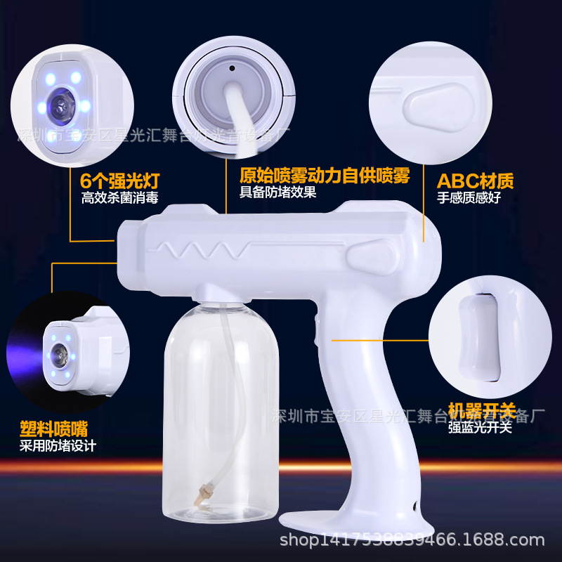 Wireless Charging Disinfection Atomization Gun Blue Light Nano Spray Pistol Disinfection Sprayer USB Portable Sterilization Nebulizer
