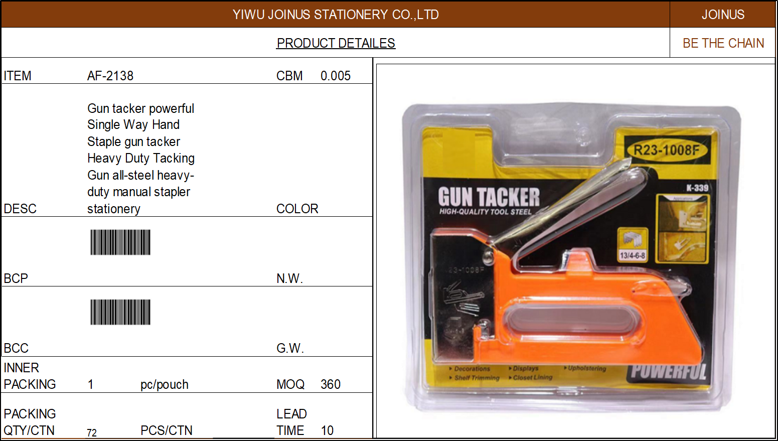 Gun tacker powerful Single Way Hand Staple gun tacker Heavy Duty Tacking Gun KAIDI R23-1008F heavy-duty manual AF-2138-3