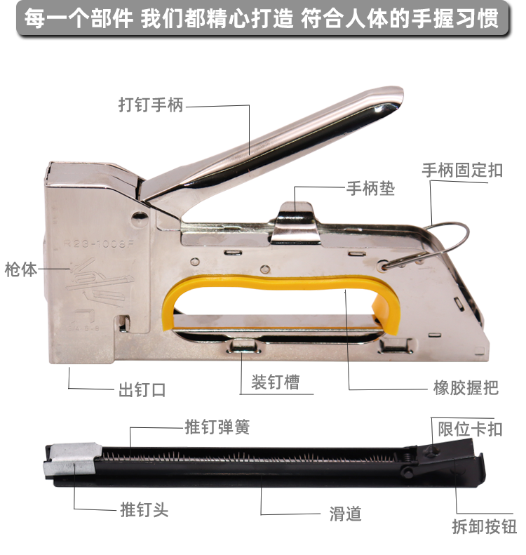 R23-1008f U-Type Pneumatic Strip Nail Gun Oil Painting Inkjet Blister Staple Gun Air Nailer U-Shaped Nail Gun Picture Frame Jump Cloth Nail Gun