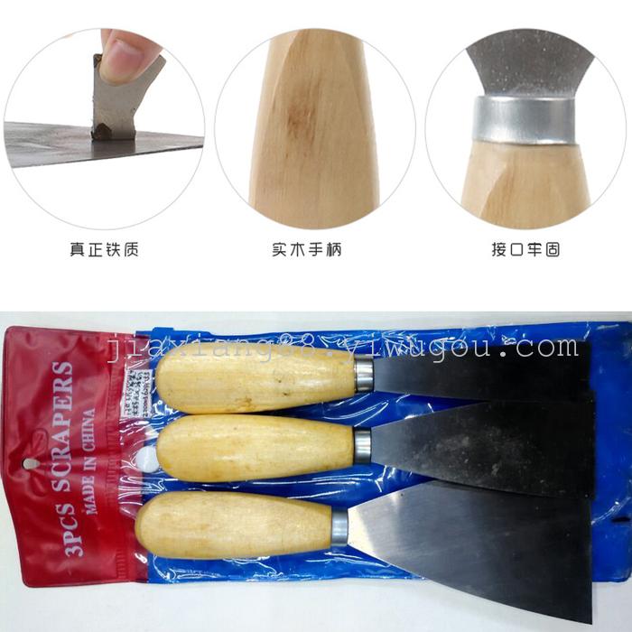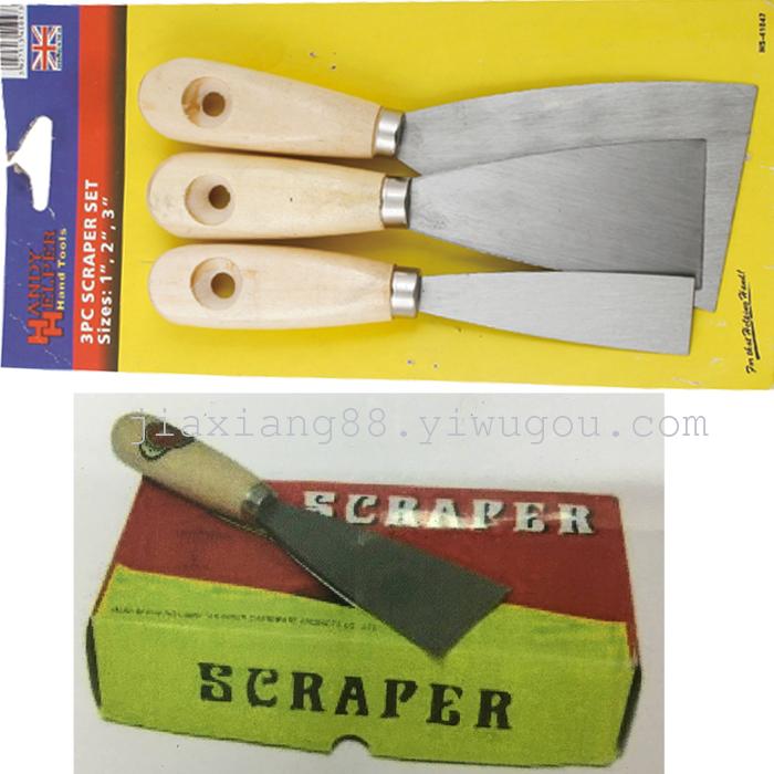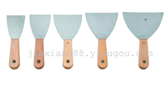 Wood clip the caudal peduncle putty knife type A (unit: inch): 1, 1.5, 2, 2.5, 3, 3.5, 4, 5 inches for a total of eight specifications, wipping = 12, a box of 20 box = 240 to) home decoration essential tool for filling, scraping sewing, erase, finishing and modification. The product is made of putty knife general by grinding and. A side tip, while the round shape, sharp edge is mainly used to scrape seam and remove dirty old debris. Rounded edges can be used for caulking smooth, cream dressing. The baby is tool specifically for convenient construction and clean porcelain paste specially processed. Construction joint, with the special small shovel will paste scraping full and tamped in seam; then with a small shovel close to the brick surface eradicate overflow paste body, filling the brick joints. Finally with a small shovel fillet edge along the Zhuanfeng straight to scrape out a nice shallow concave arc to be accomplished, namely! This product can be used to putty, putty, putty, remove dust, the deployment of eradication of the old coating.