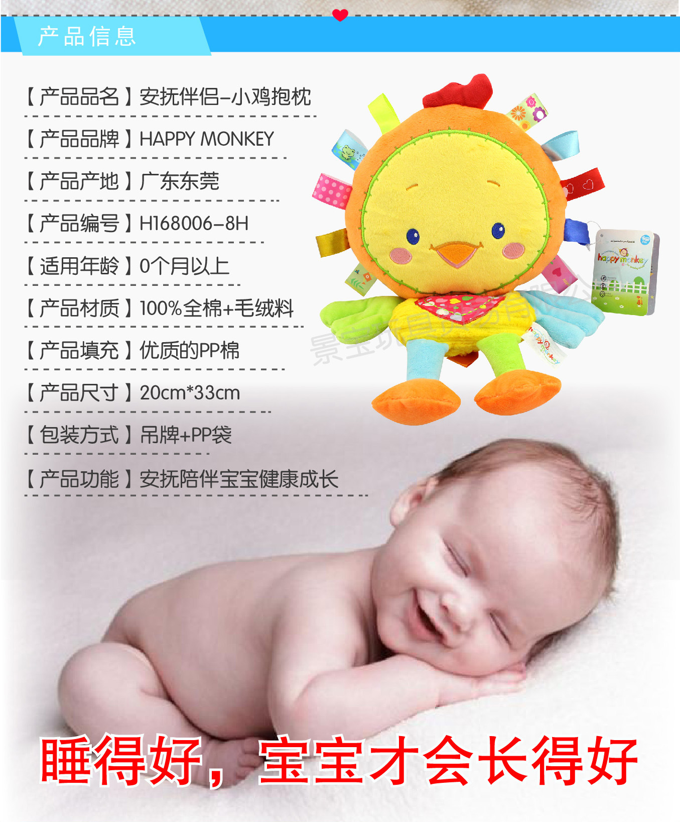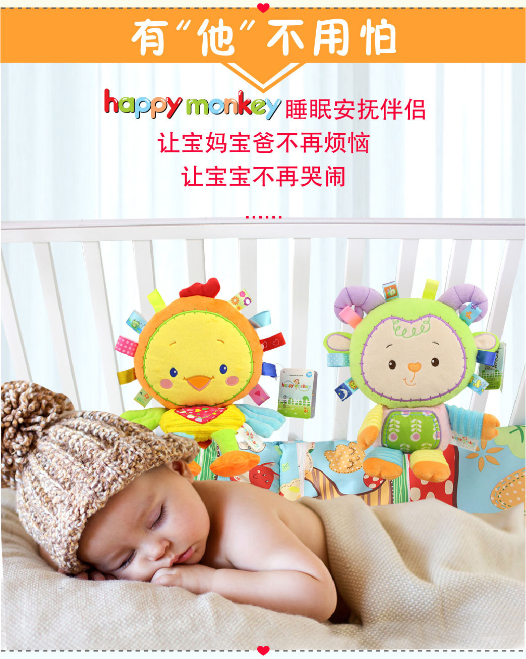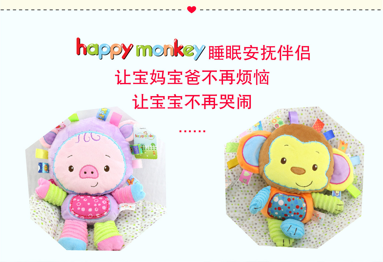 Happy monkey brand, high quality baby doll, calm doll high 33 cm, 20 cm wide, is a very good for the baby grow, regardless of the degree of fabrics and fine workmanship are good for baby, the baby healthy mother to be Happy.
