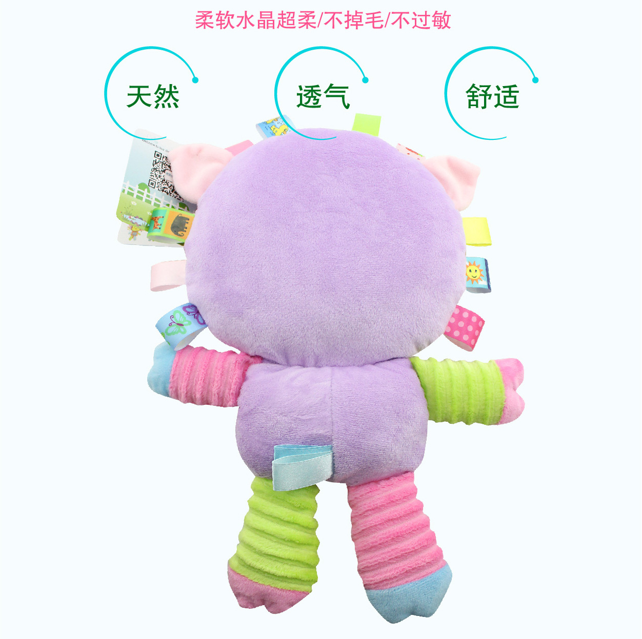 This soothing product adopts elephant, lamb, rabbit, monkey, lion and piglet as the main body.Color is rich, meet the tastes of different baby.Each animal has a rattle and a BB on its body, and a ribbon with a different pattern on its head.Meet the needs of the baby, appease the baby mood.This calm product the biggest characteristic is that the joining together of different fabrics, delicateEmbroider design, can promote baby's world of the senses.