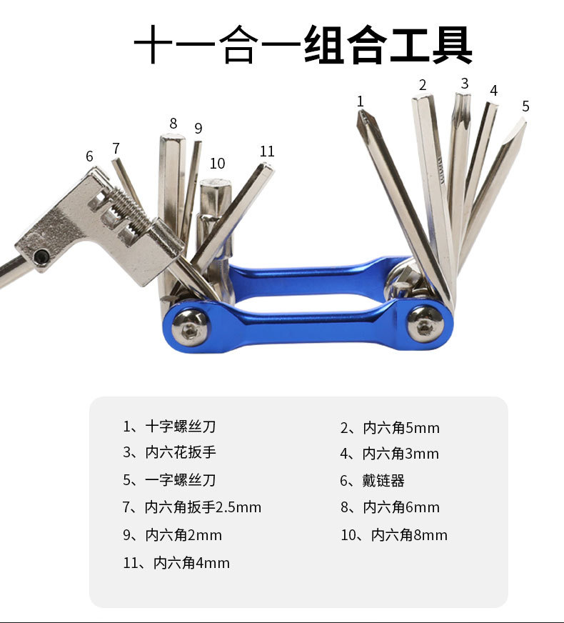 Color Aluminum Alloy Combination Tool Mountain Bike Repair Repair Tool Belt Chain-Cutting Device Repair Kit