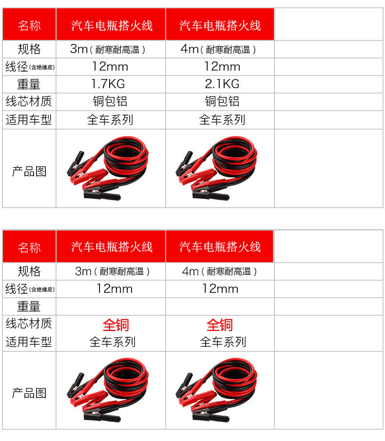 Automobile storage battery cable fire line pure copper clip cross Jianglong thickening bolding connecting line iron line fire line