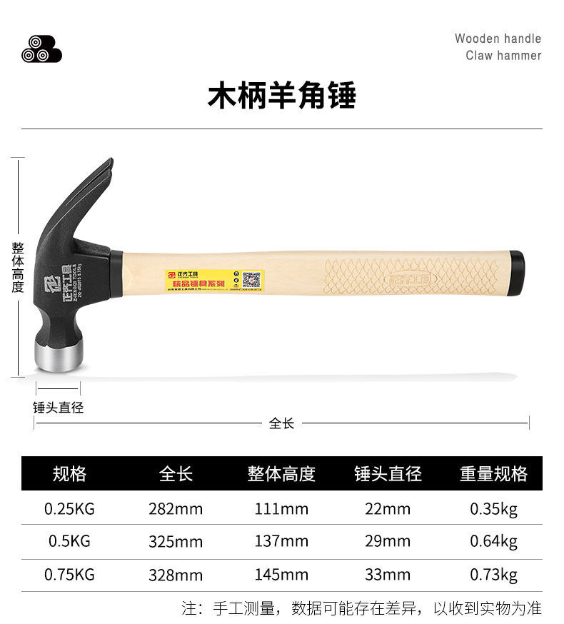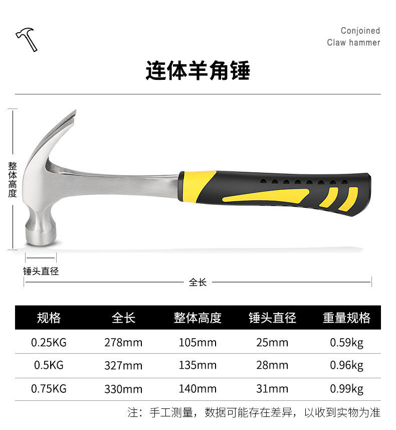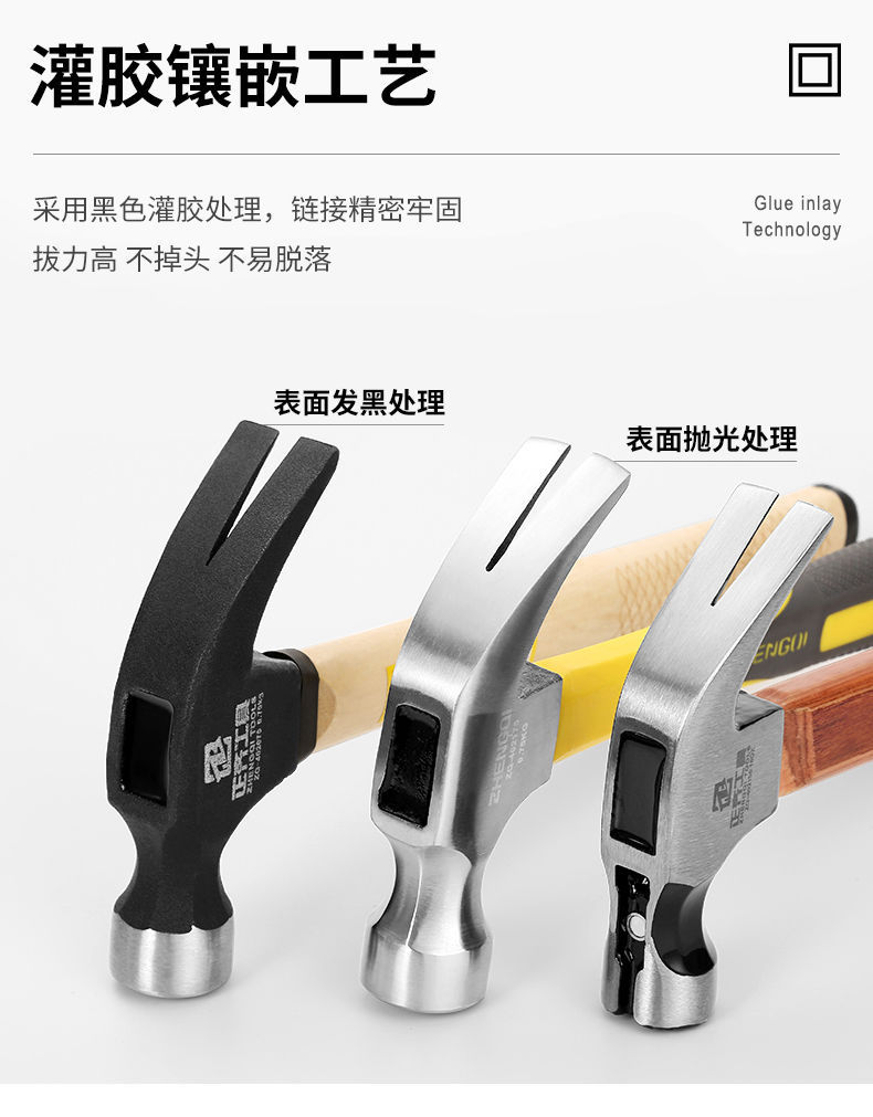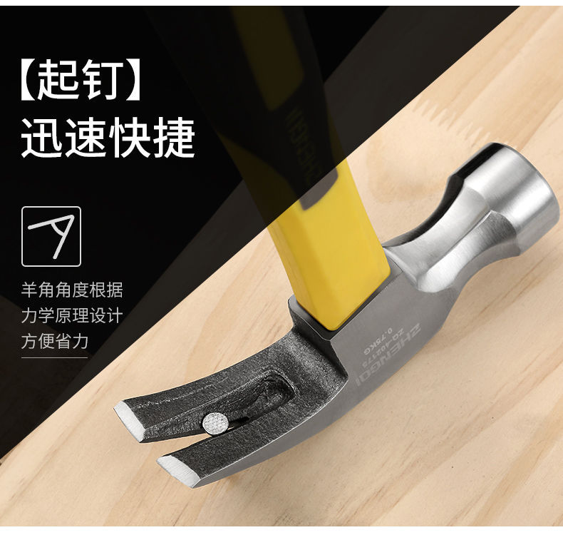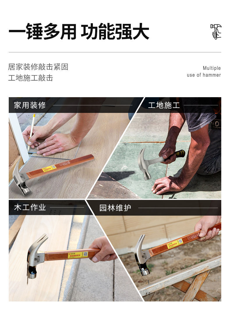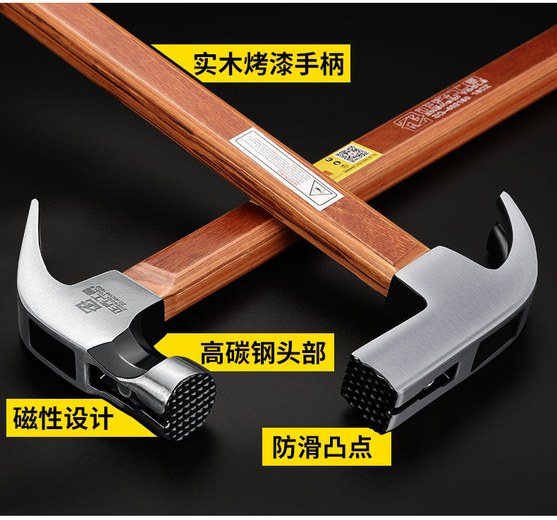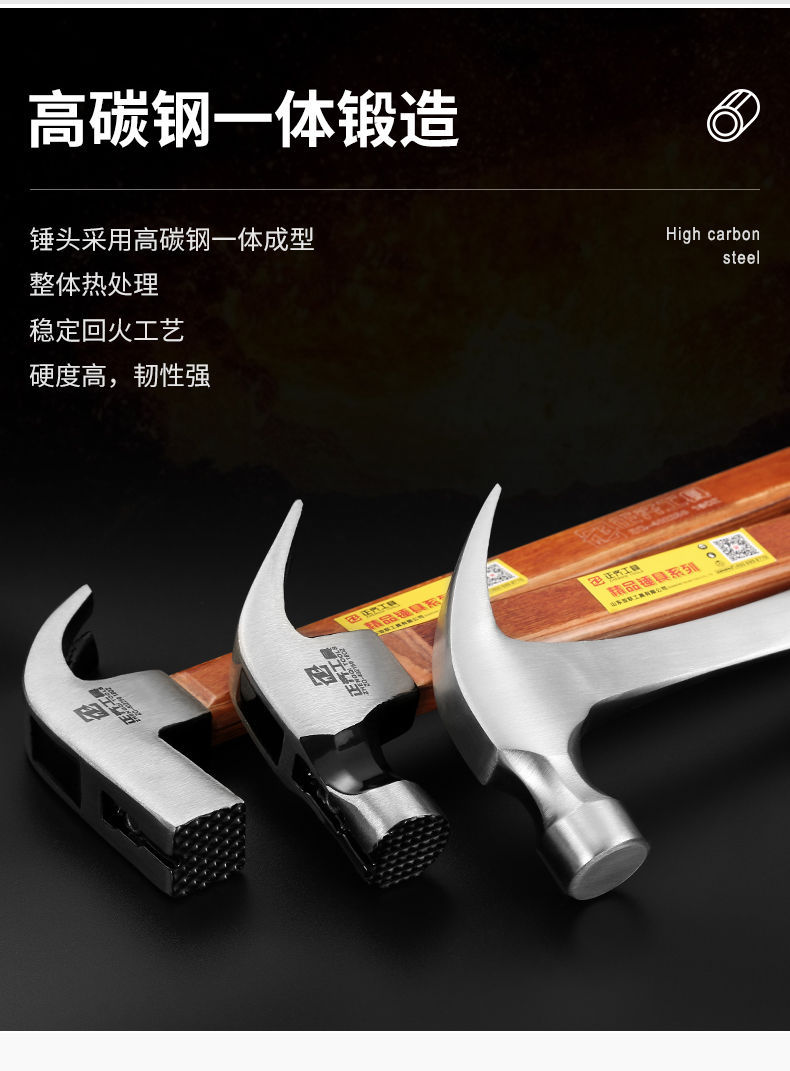 Woodworking Claw Hammer Iron Hammer Hammer Hammer Shape Hardware Tools Construction Site Integrated Solid High Carbon Steel Round Head Nail Hammer