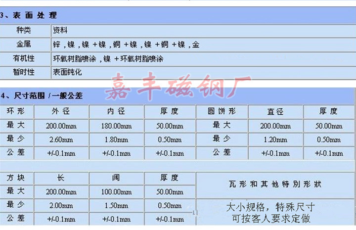 Ndfeb magnets: ndfeb is currently found to be the most commercially available magnet, known as the magnetite king, which has a very high magnetic energy with a maximum magnetic energy product (BHmax) more than 10 times higher than Ferrite. Therefore, also known as: strong magnetic, such as magnetic steel. Its own mechanical processing performance is also quite good. The working temperature can reach up to 200 degrees Celsius. And its quality is hard, performance is stable, have very good cost performance, therefore its application is extremely wide. But because of its strong chemical activity, its surface must be treated.