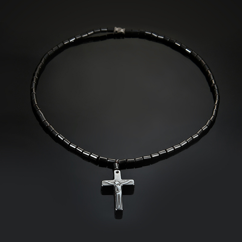 Magnetic Black Magnet Ornament Black Stone Cross Pendant Necklace Yiwu Factory Direct Sales Cross-Border Supply