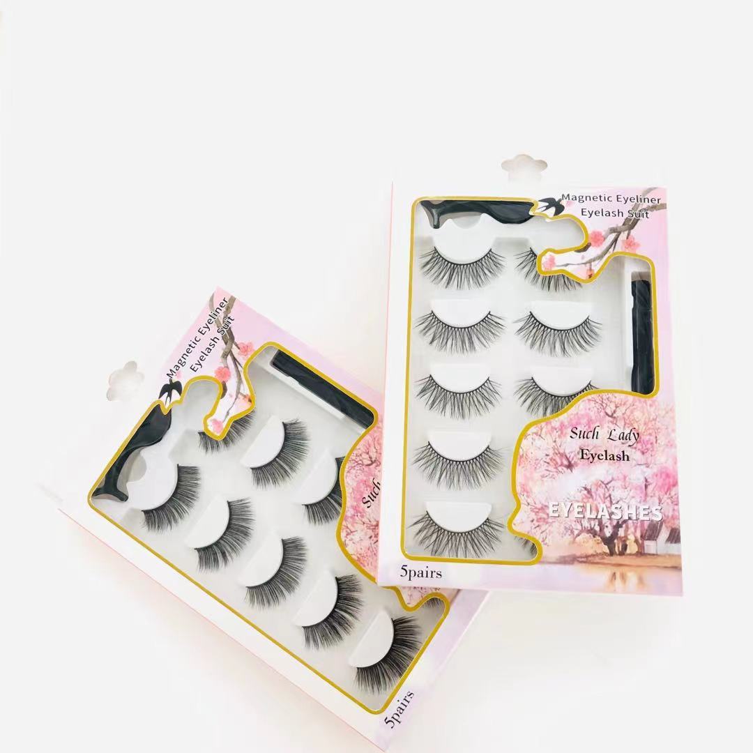 Spot 5 Double Pairs of False Eyelashes Set 3D Natural Simulation Magnet False Eyelashes Liquid Eyeliner Set