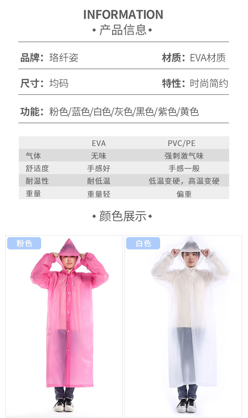 Thick Fashion Transparent Outdoor Travel Poncho Male and Female Portable Adult NonDisposable Eva Raincoat Children