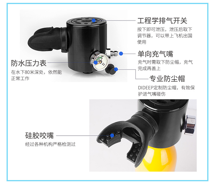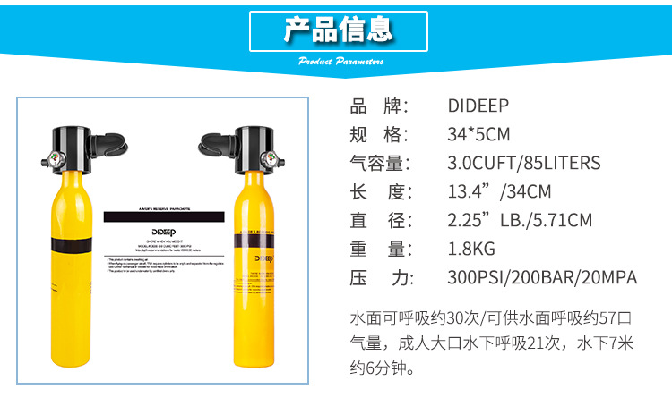 Dideep Scuba Mini Oxygen Bottle Diving Teaching Underwater Respirator Swimming Equipment Breathing Oxygen Tank