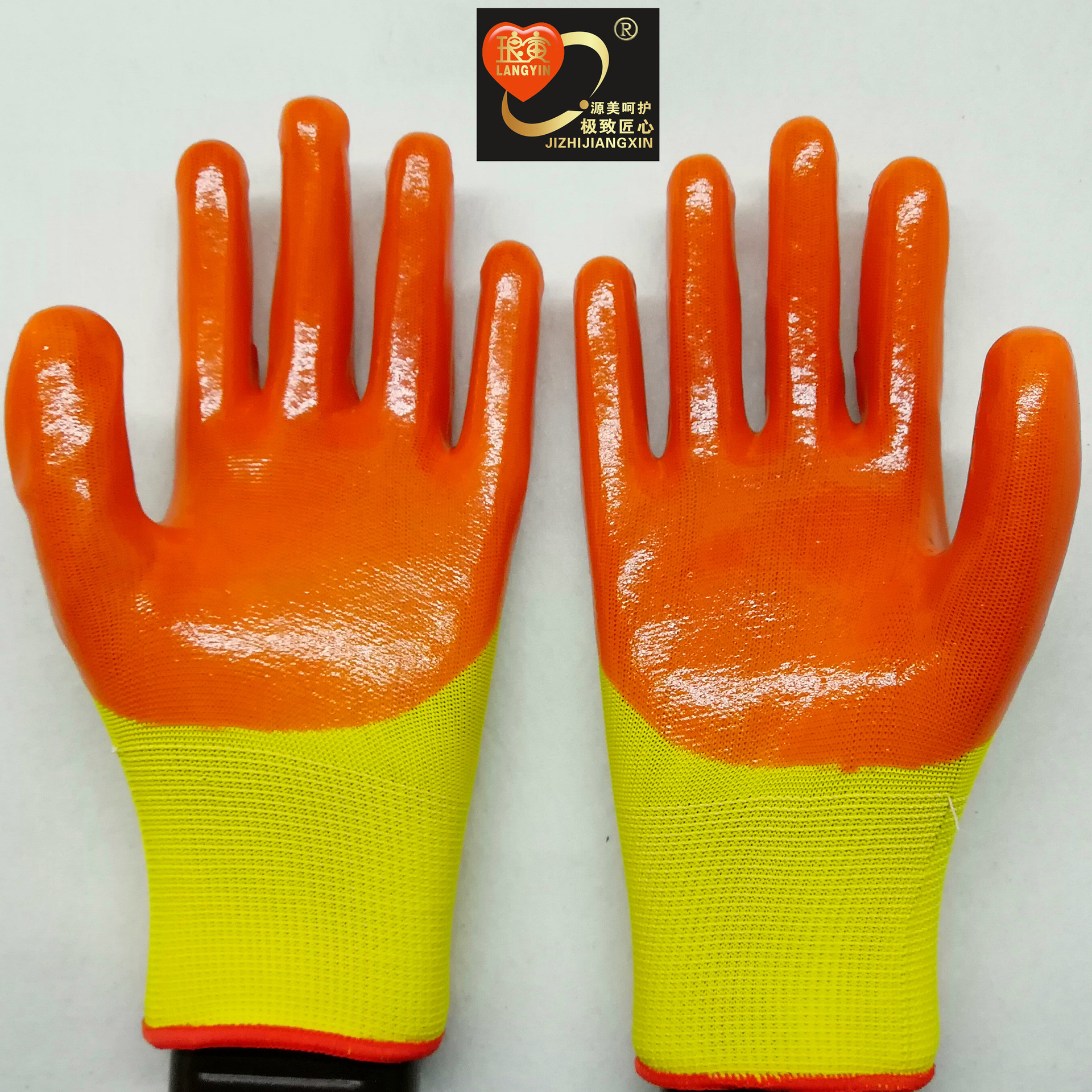 Langyin labor protection glove soaked in acid alkali wear resistant cowhide protective work half hanging PVC gloves P318