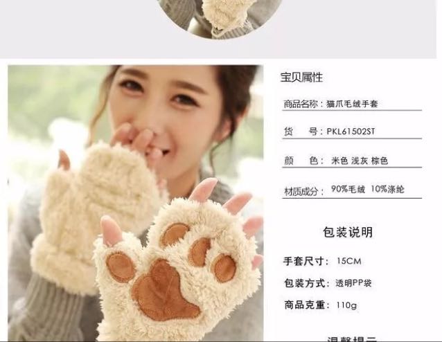 The Bear claw cat claw half refers to plush cloth cartoon gloves manufacturers direct sales