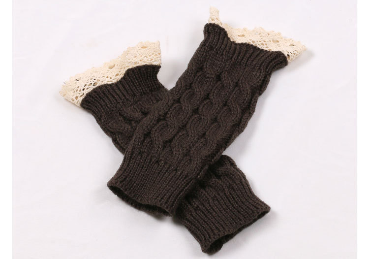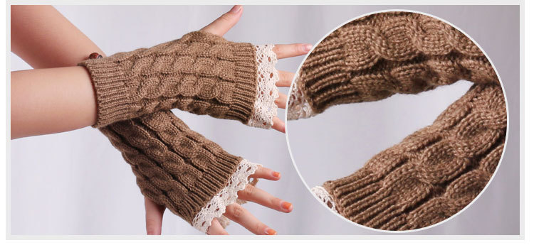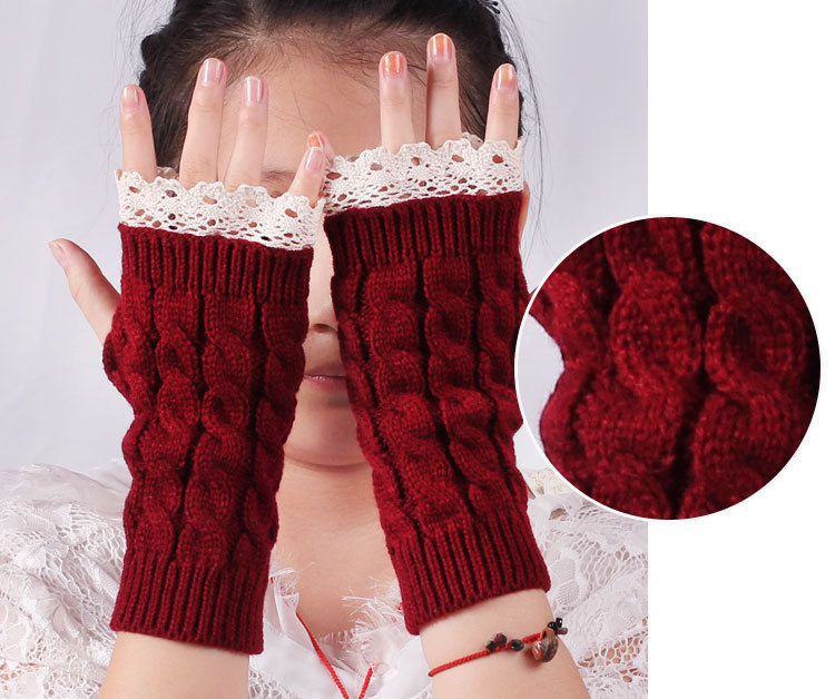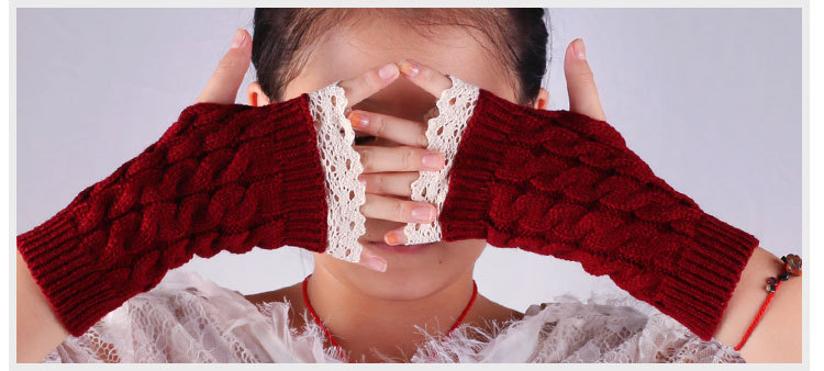Knitting Wool Gloves Beautiful and Beautiful Lace Lengthened Wristband Winter Women's Thermal Knitting Half Finger Gloves