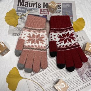 Women Winter Knitting Velvet Jacquard Thickened Non-Slip Warm Fashion Winter Gloves Factory Wholesale Knitting Gloves