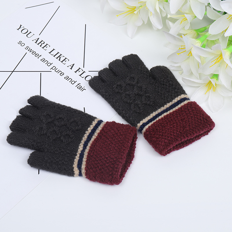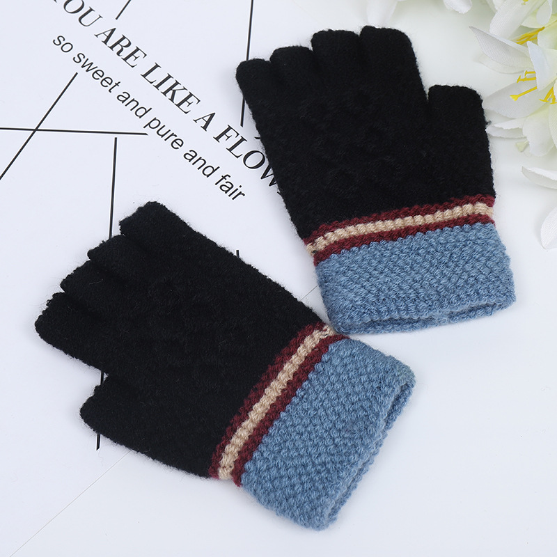 New Thickened Korean Style Men's Gloves Warm Half Finger Knitted Student Gloves Fashion Simple Cycling Knitting Wool Gloves
