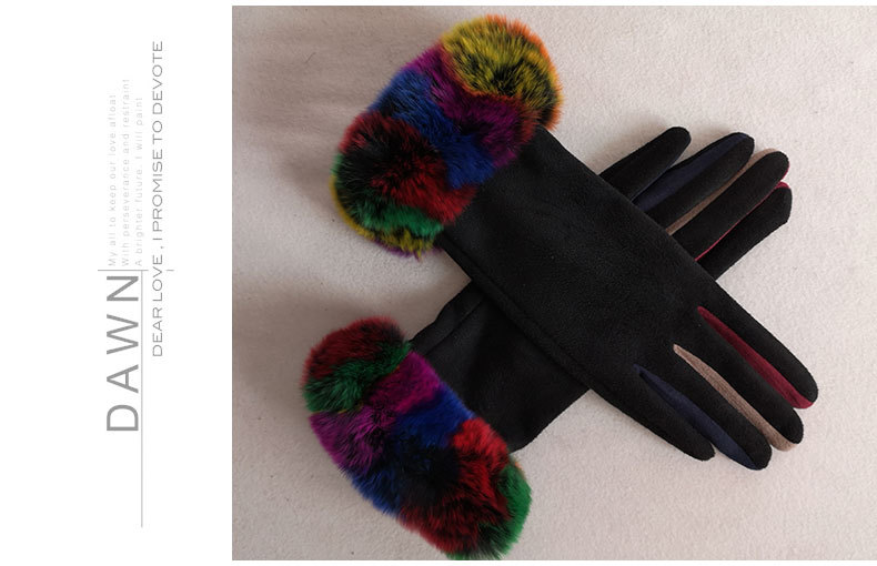 Women's Autumn and Winter Touch Screen Fur Gloves Fleece Thick Windproof Coldproof Warm Gloves Rabbit Hair Riding Gloves