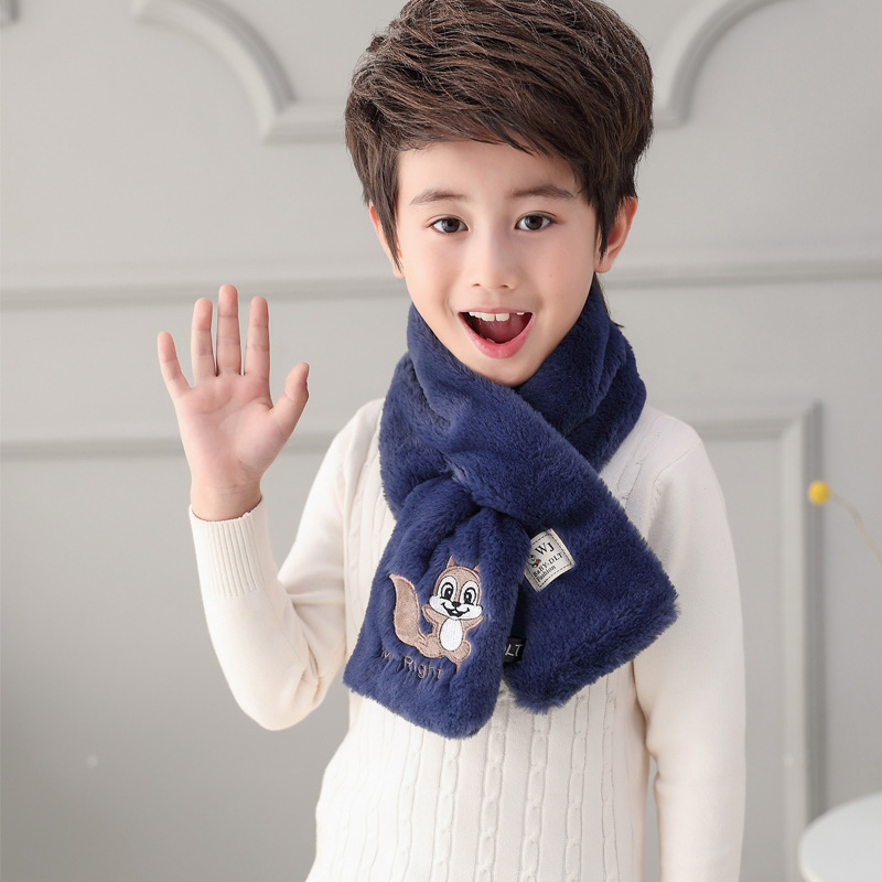 Korean Style Autumn and Winter New Men's and Women's Warm Scarf Thickened Imitation Rabbit Fur Embroidery Cartoon All-Match Scarf
