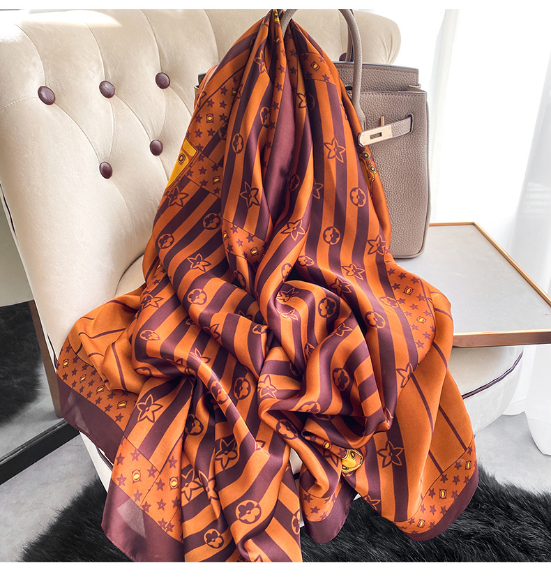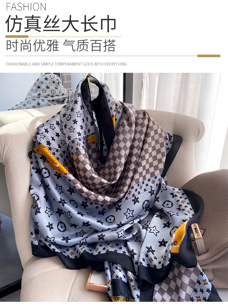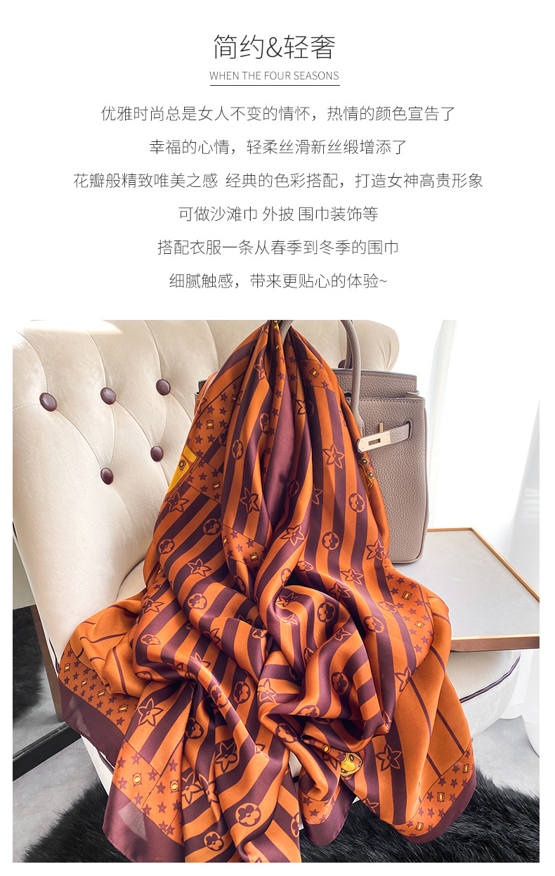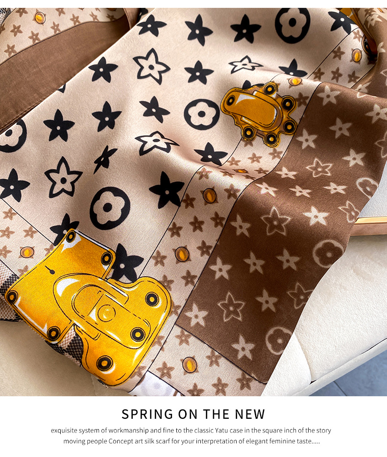 New Silk Forging Spring Decorative Ethnic Plain Imitated Silk Scarves Female Four Seasons Universal Flower Printing Stylish Female Silk Scarf