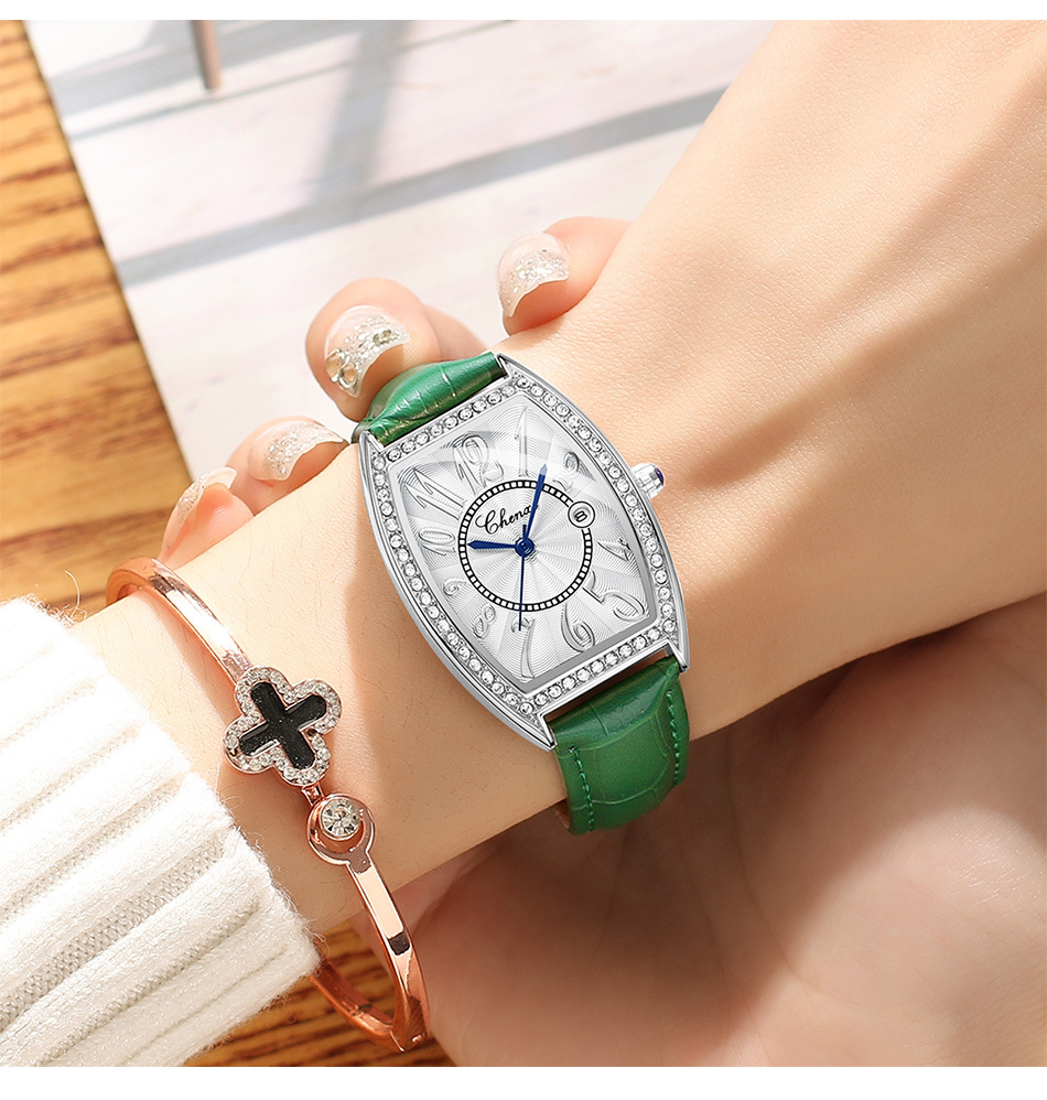 Popular Women's Watch Women's Watch Fashion Wine Bucket Diamond-Embedded Leather Waterproof Net Red Watch Leather Watch