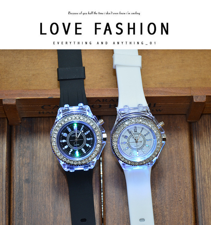 Luminous Glow Silicone Watch Wholesale Women's Fashion Watch Student Watch Led Diamond Glow Watch