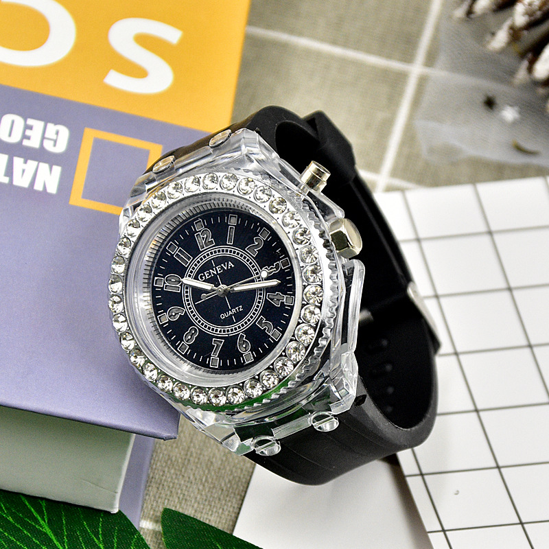Cross-Border Supply Luminous Watch Women 'S Diamond Candy Color Silicone Watch Glow Watch