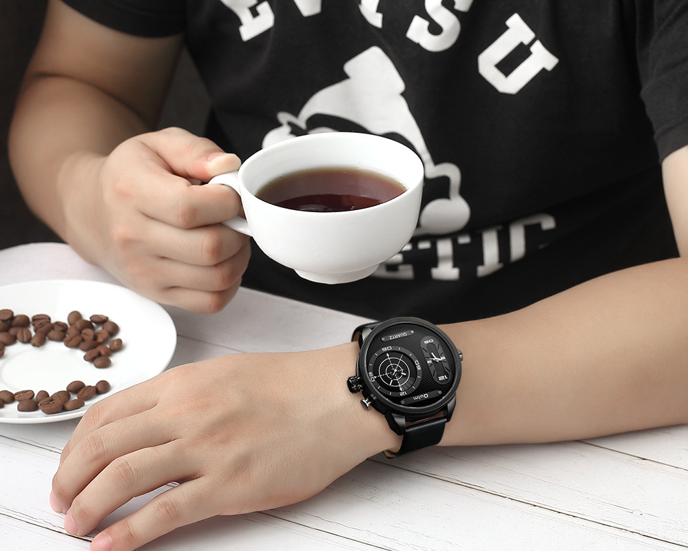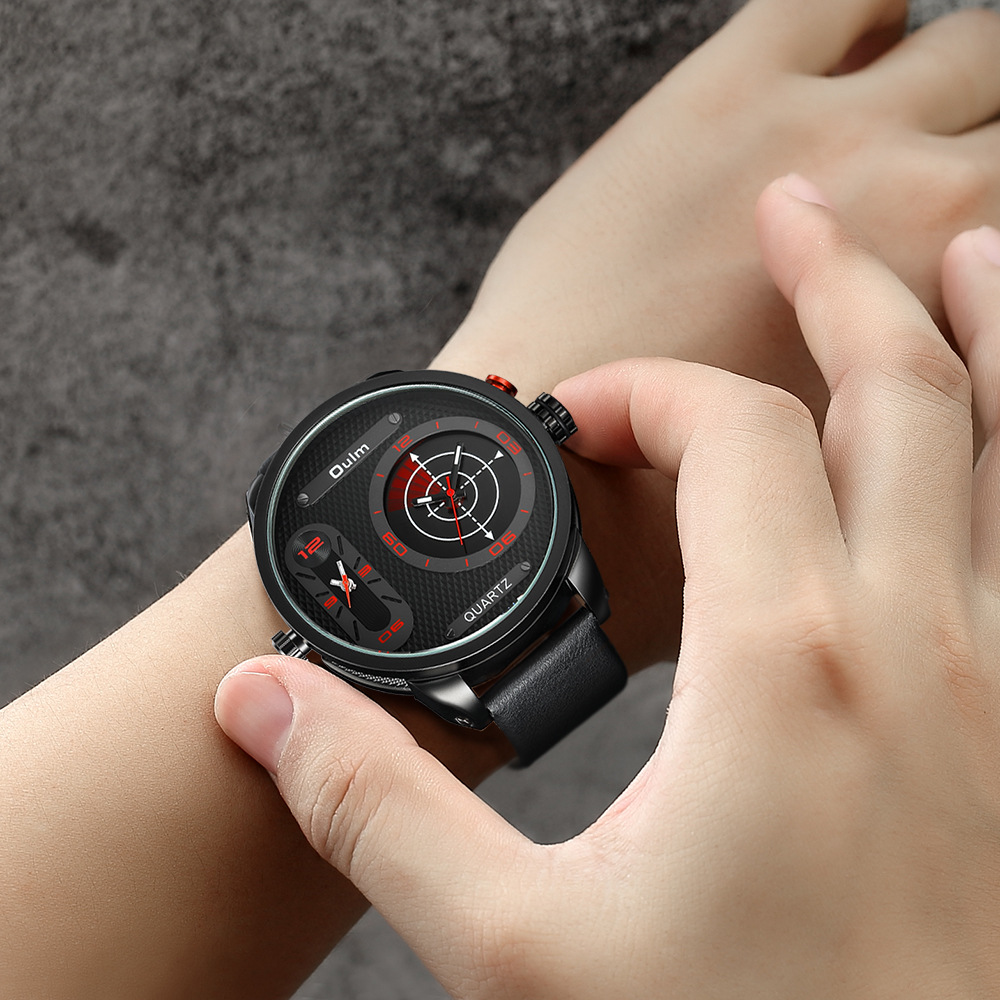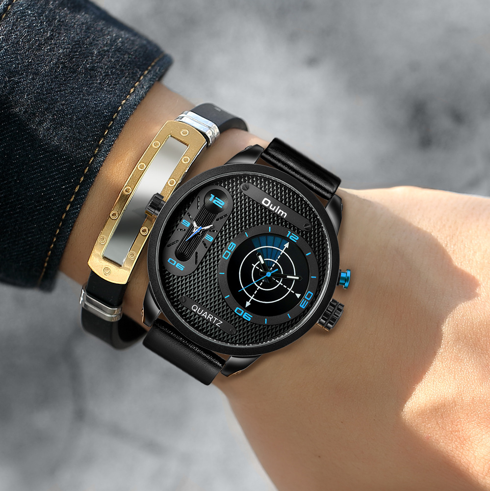 Oulm Oulm New Fashion Men's Watch Men's Quartz Watch Double Time Zone Large Dial Luminous Leather Watch