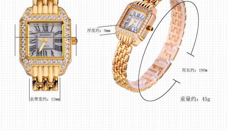 Material: zinc alloy watchband | Dial shape: Square | Waterproof: can |