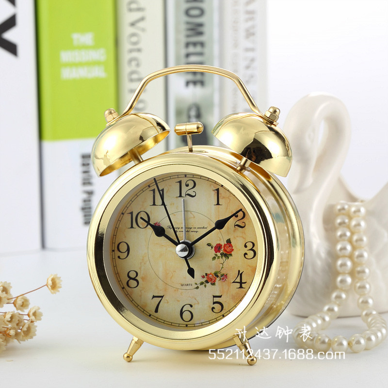 Factory Wholesale 3-Inch Metal Bell Alarm Clock with Night Light Bronze Bronze Gold Rose Gold Children Bedside Alarm Watch