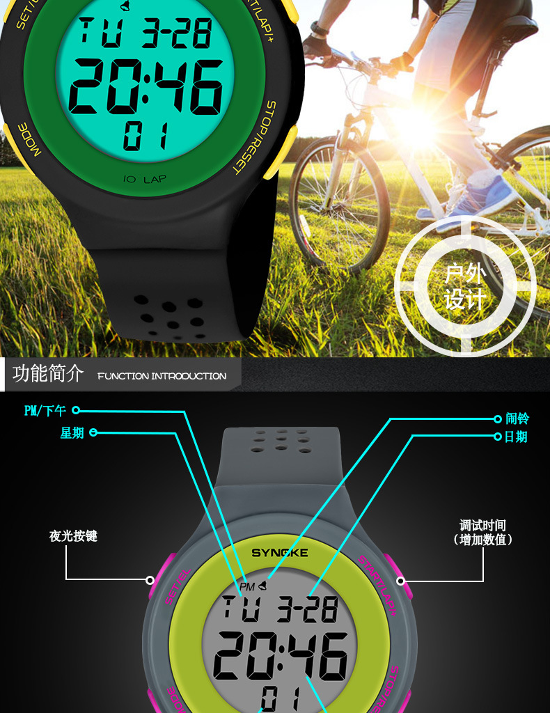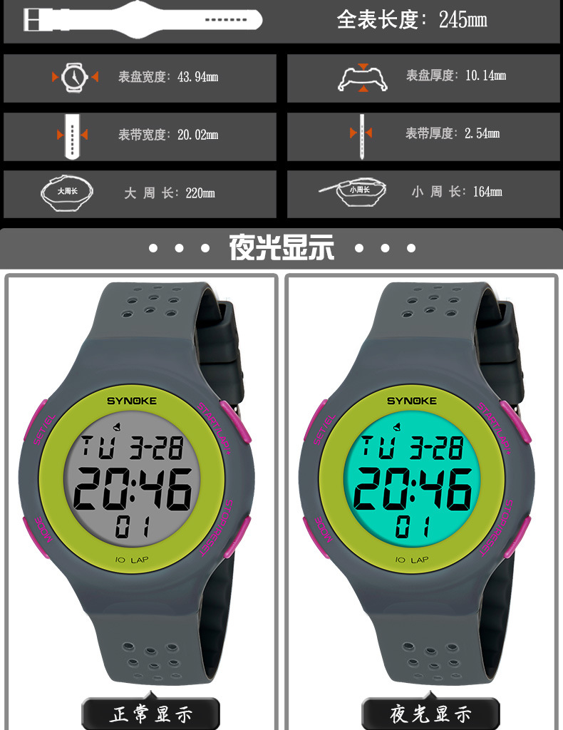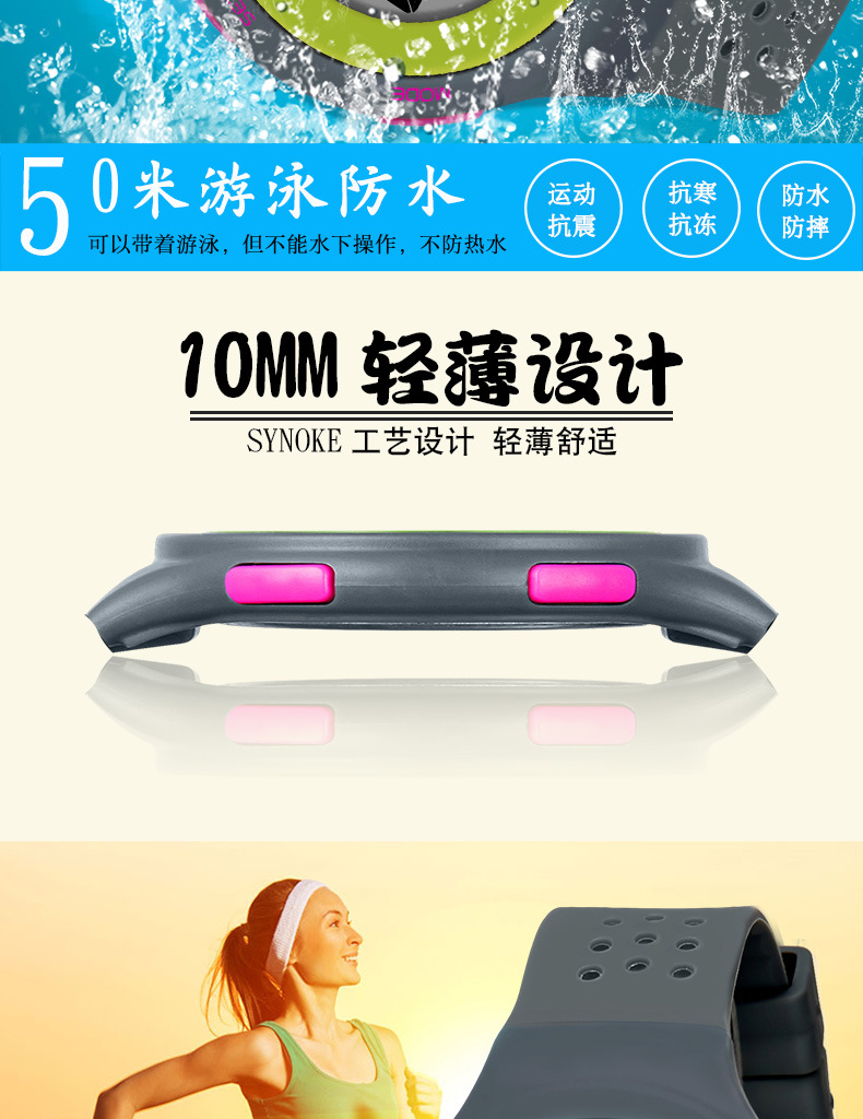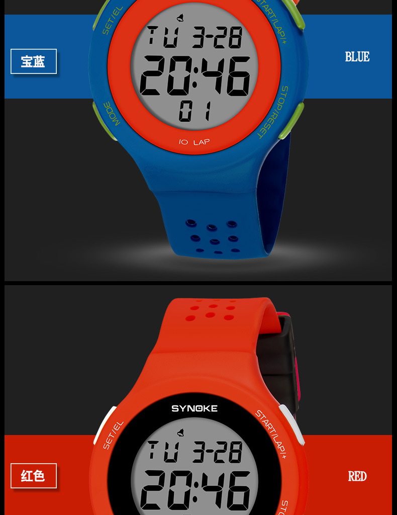 Synoke Ultra-Thin LED Swimming Waterproof Electronic Watch Porous Breathable Fashion Sport Watch Student Couple Electronic Watch