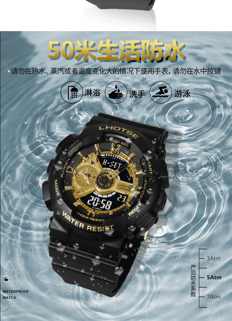 Wolf's Multi-Functional Electronic Sport Watch Male Student Watch Male Youth Ins Trendy Waterproof Watch