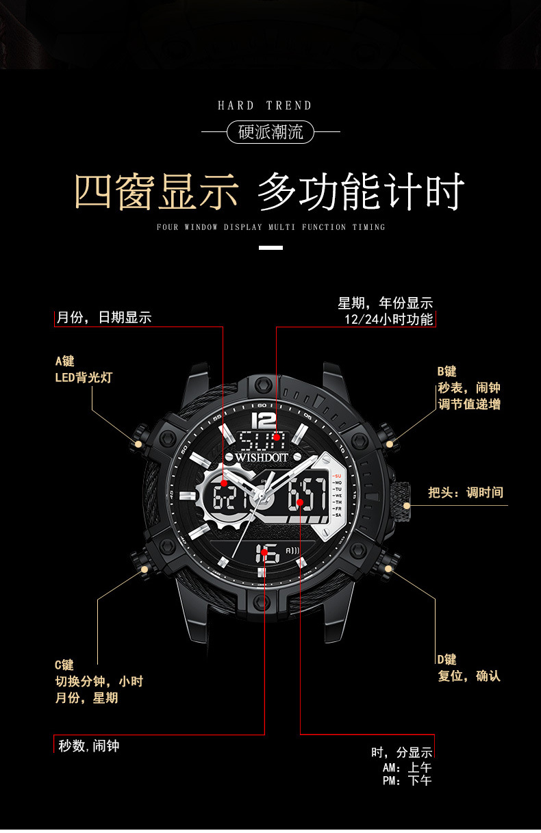 New Watch Men's Large Dial Sports Trend Foreign Trade Popular Style Genuine Double Display Quartz Watch Sport Watch