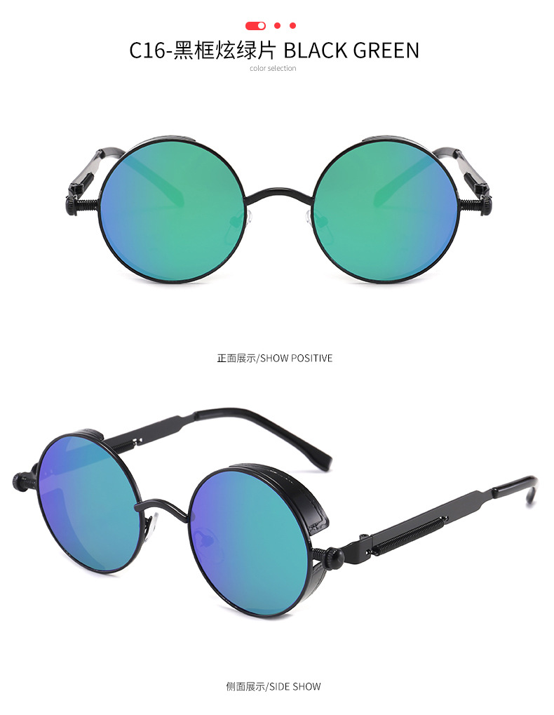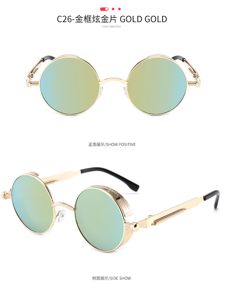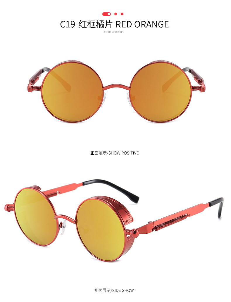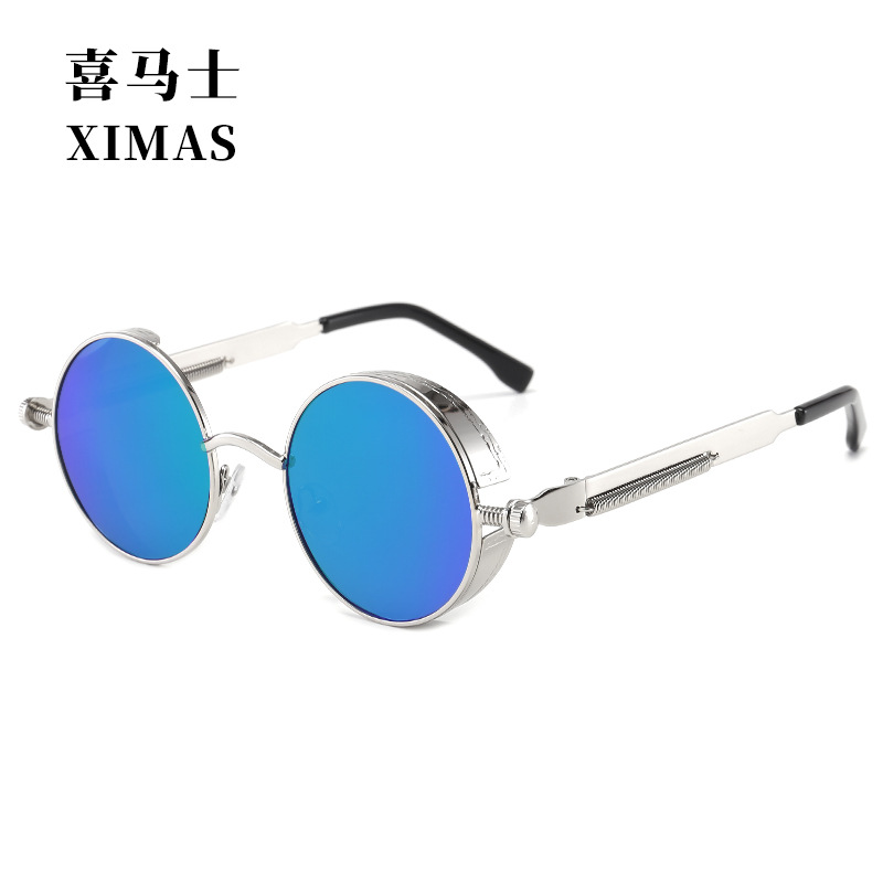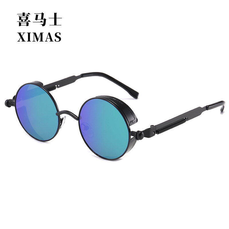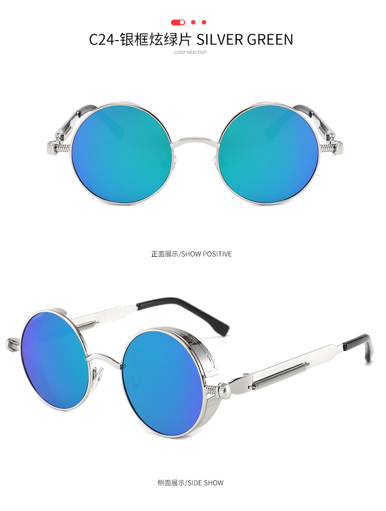 Retro Round Frame Sunglasses Metal Spring Prince Glasses Reflective Colorful Men's Sunglasses Steampunk