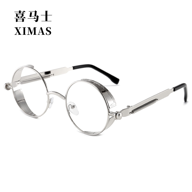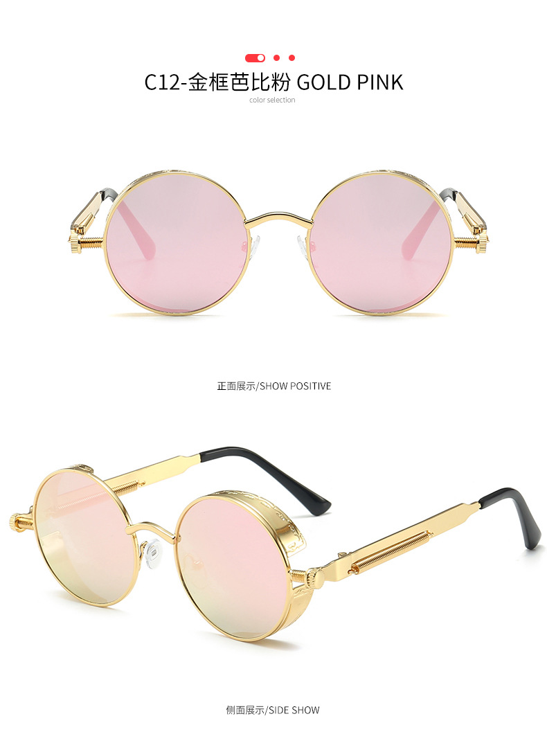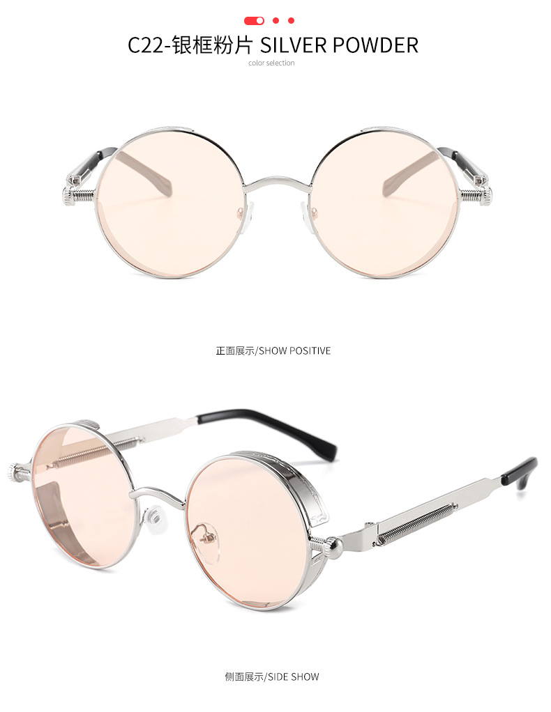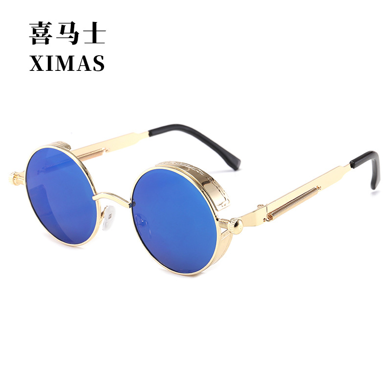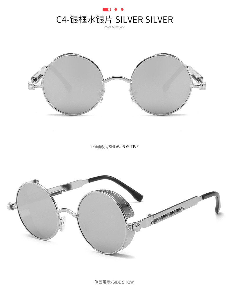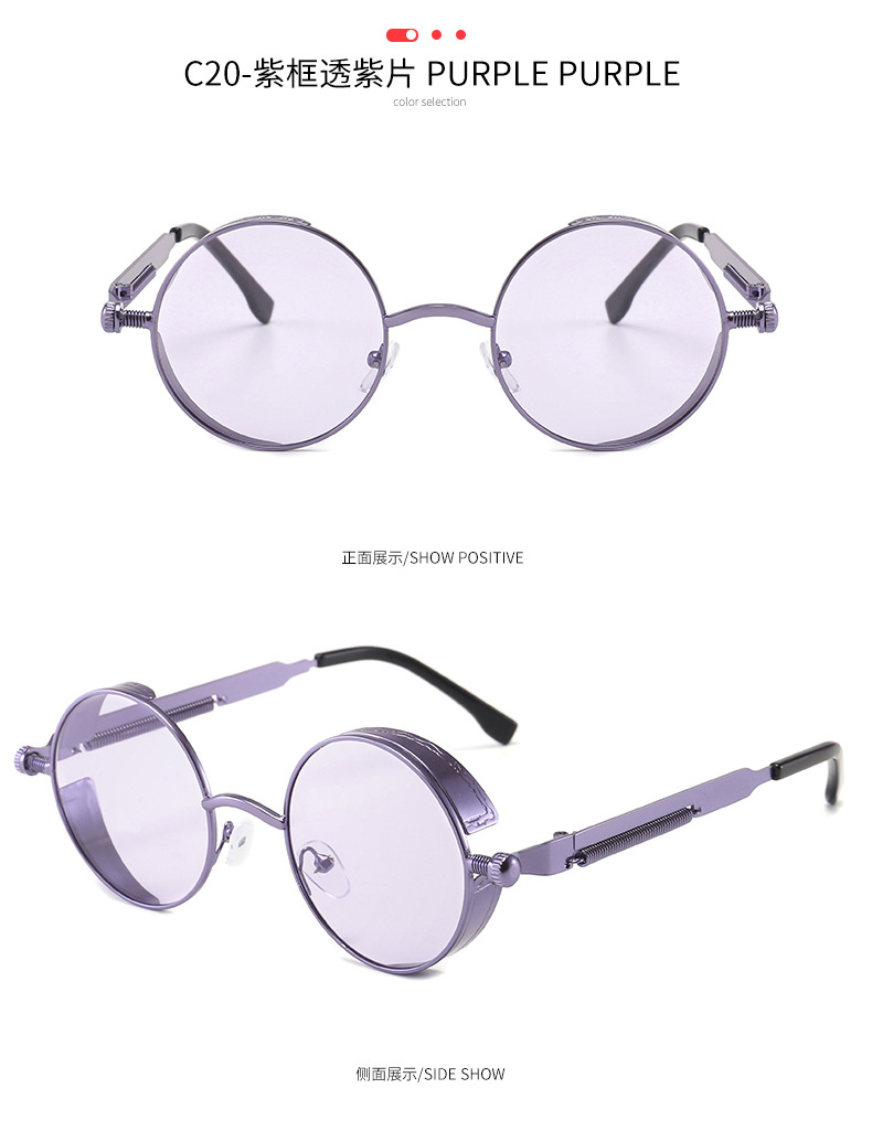 Retro Round Frame Sunglasses Metal Spring Prince Glasses Reflective Colorful Men's Sunglasses Steampunk