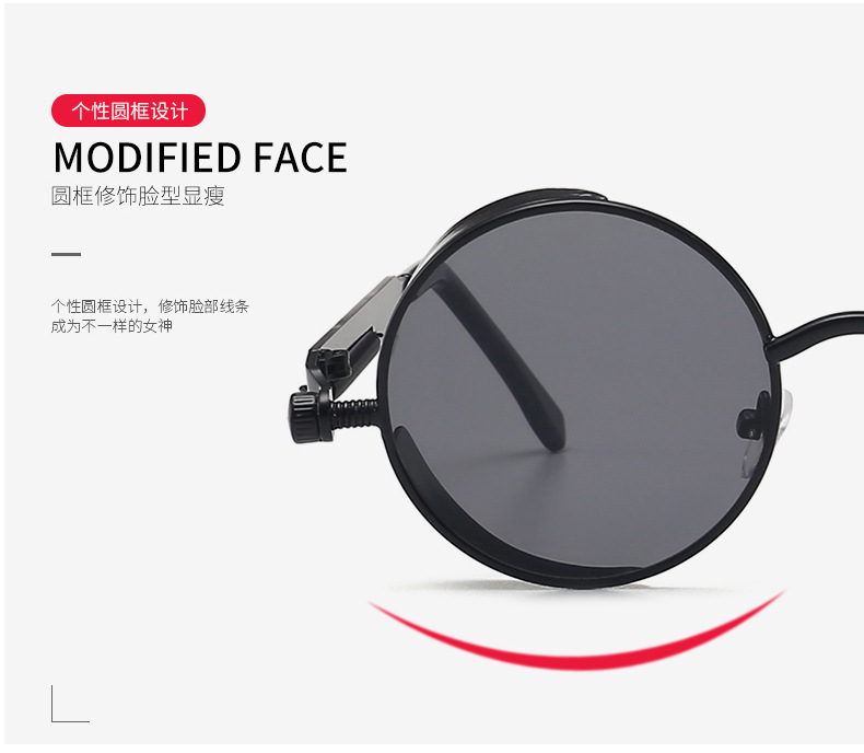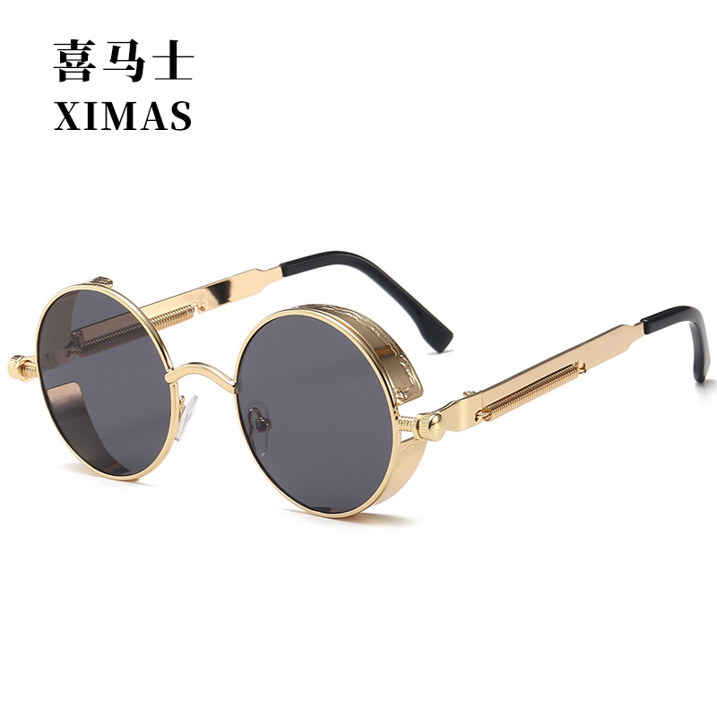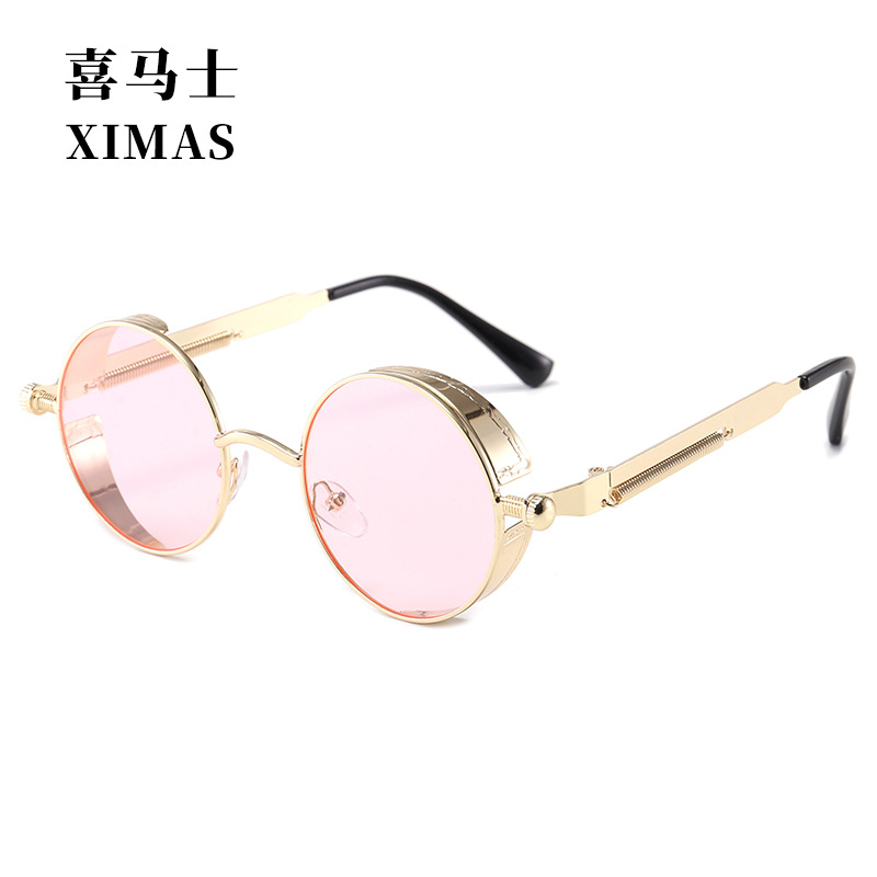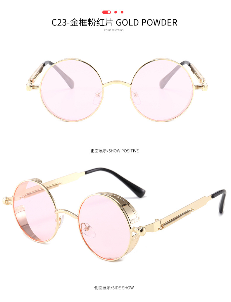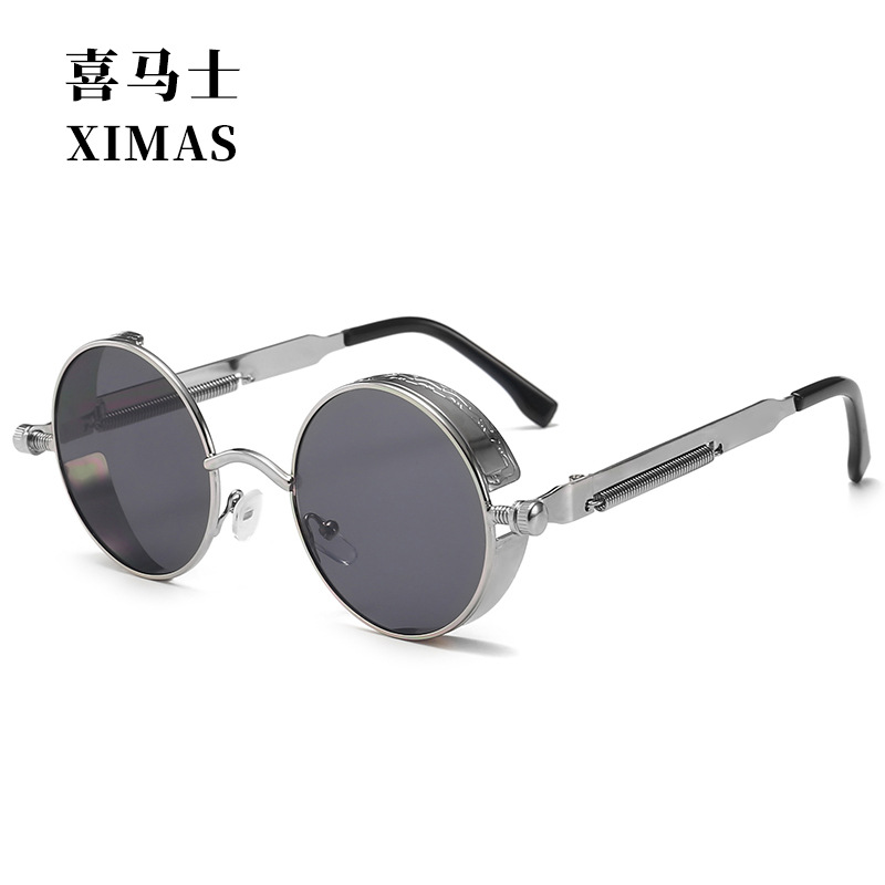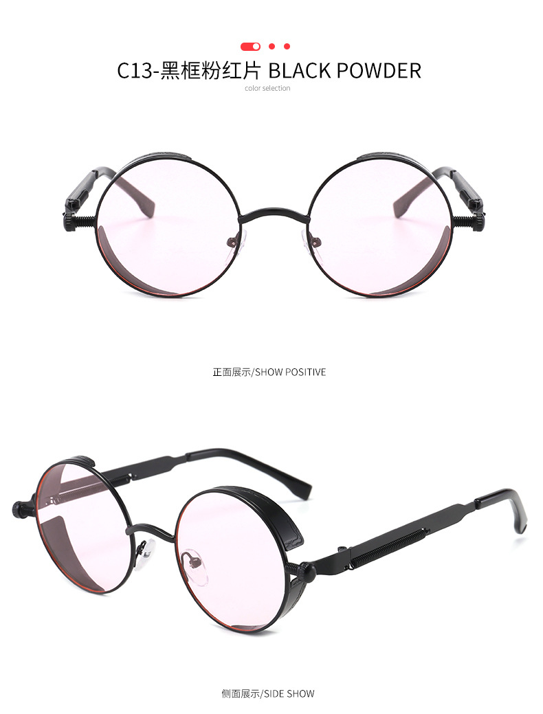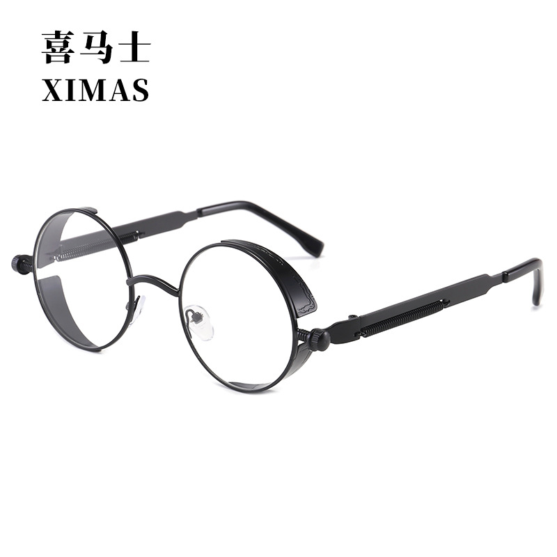 Retro Round Frame Sunglasses Metal Spring Prince Glasses Reflective Colorful Men's Sunglasses Steampunk
