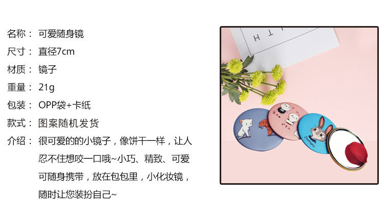 Cosmetic Mirror Tin Mirror Cartoon Small Mirror Portable Wholesale Gift Small Mirror Small Gift Customization