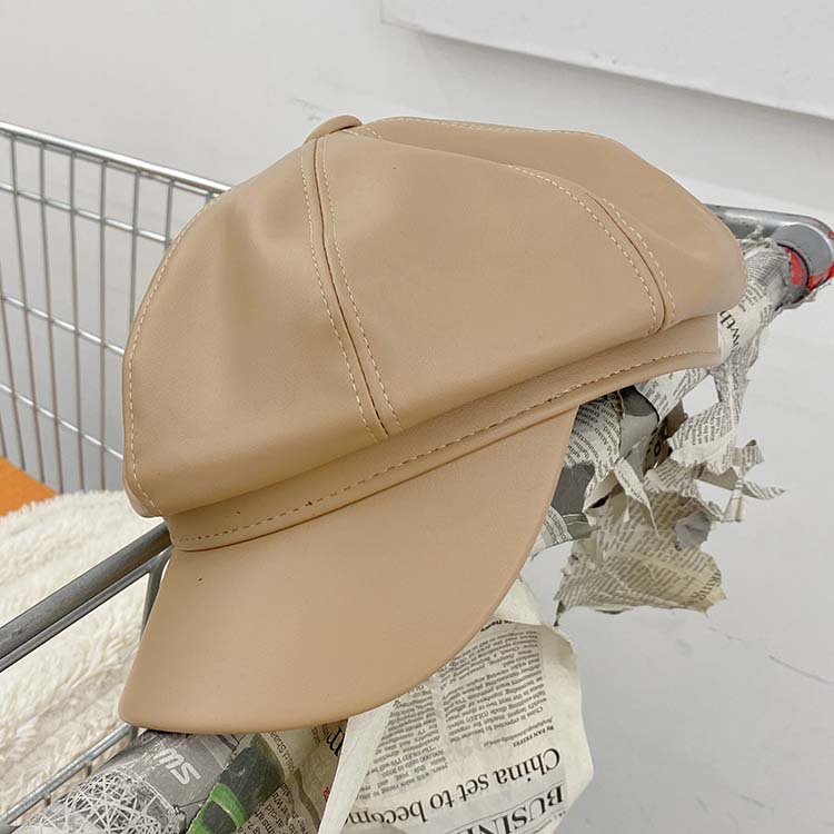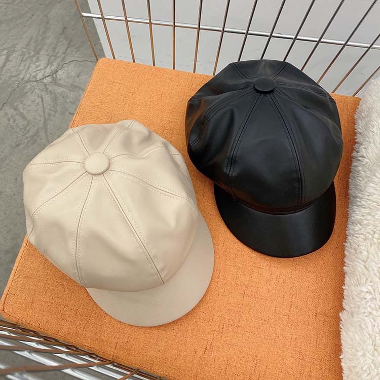 Leisure cap and Korean Style Spring and Autumn Fashion All-Matching Leather Hat Peaked Cap Beret
