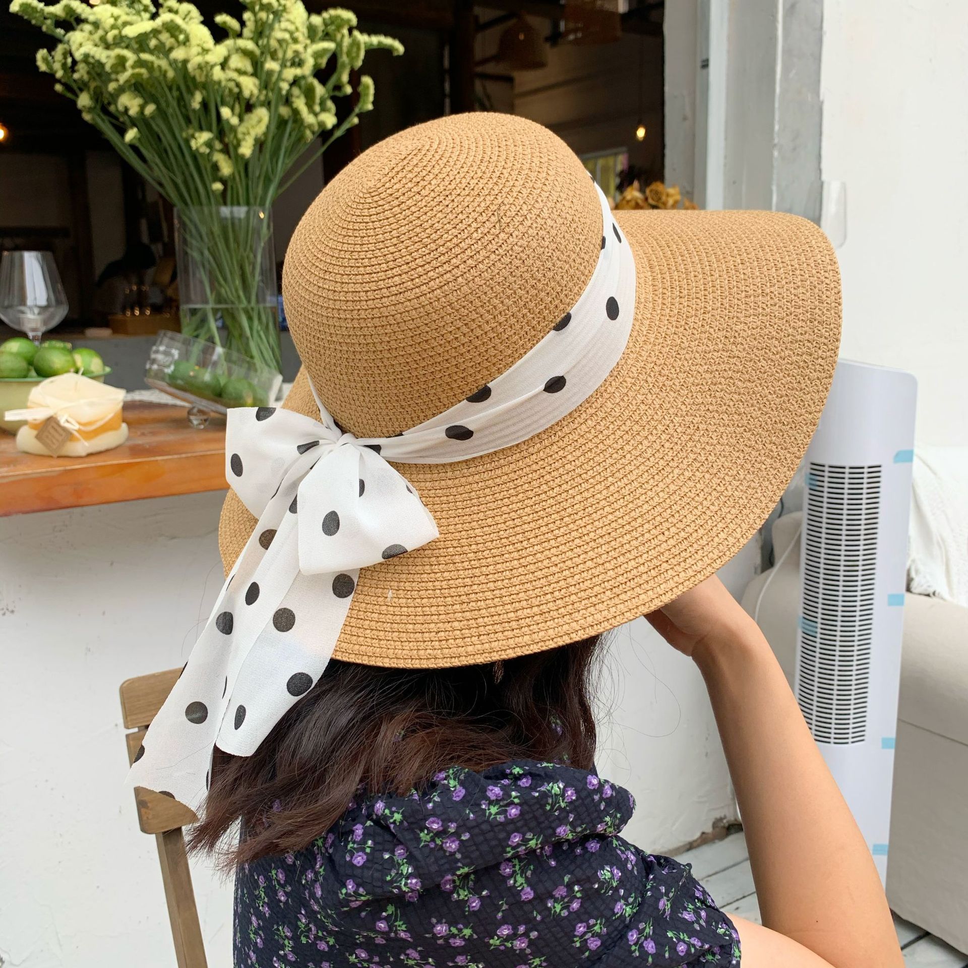 Sun Protection Sun-Shade Beach Hat Children's All-Match Wide Brim Hat Seaside Vacation Straw Hat Polka Dot Leisure cap