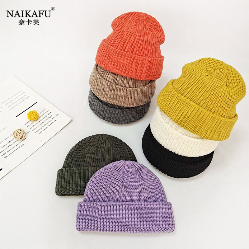 Knitted Woolen Cap Women's Autumn and Winter Korean Style Pullover Keep Warm Beanie Hat Hip Hop Skullcap Chinese Landlord Hat Logo